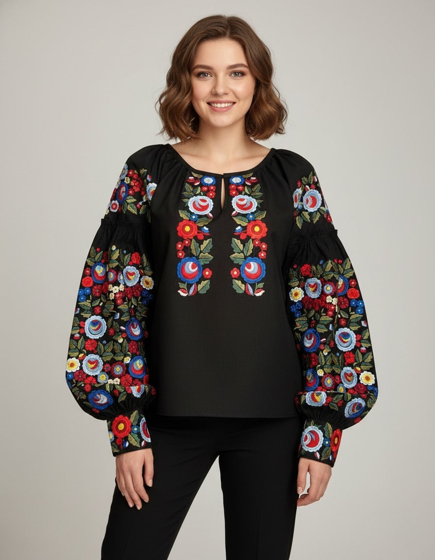 Black Ukrainian Embroidered Vyshyvanka Blouse