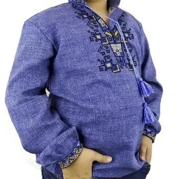 This denim jacket with embroidery is a great choice for a boy. It comes with long sleeves and is available in heights ranging from 92-134 cm. The jacket features an ornament fabric patch with Jns color embroidery. It is made of linen-gabardine fabric, which is durable and comfortable to wear. The jacket is also designed as a children's shirt, making it a versatile addition to any boy's wardrobe.