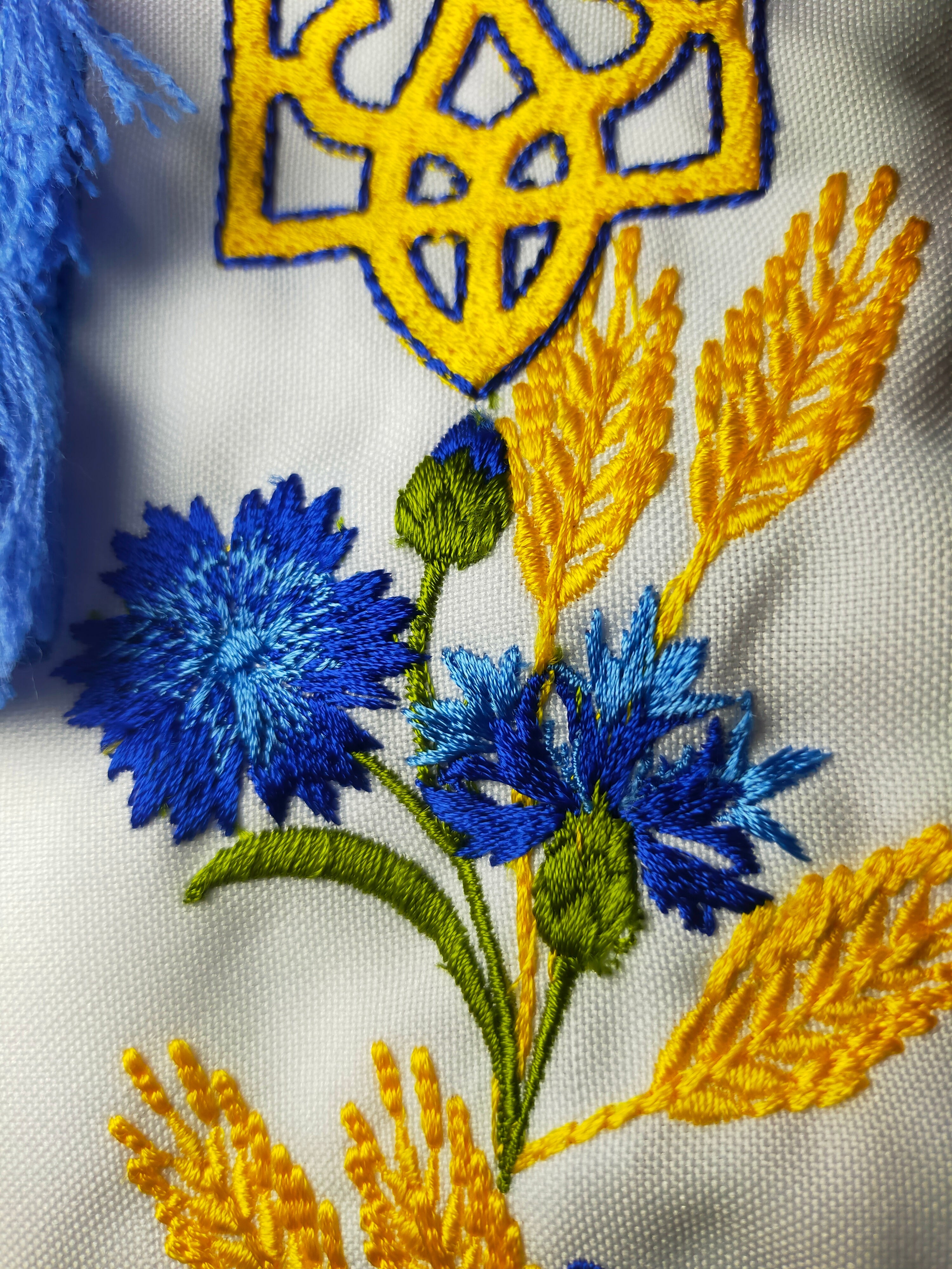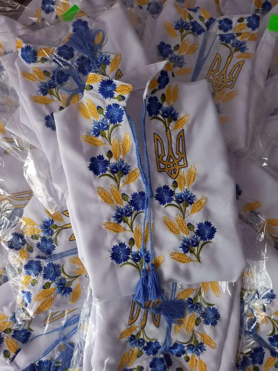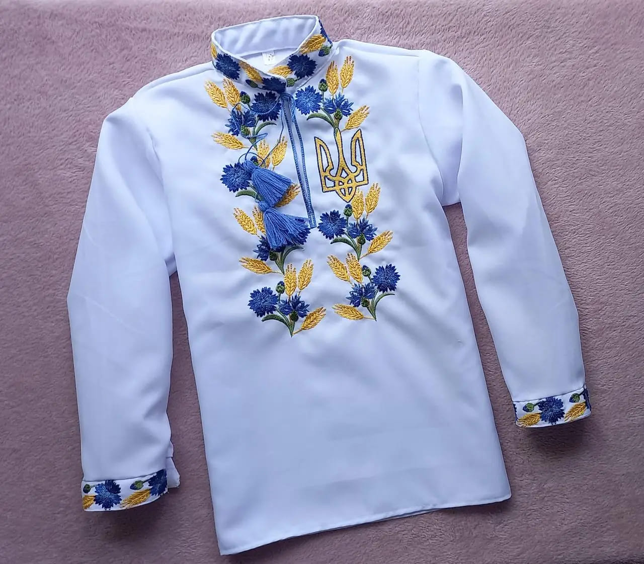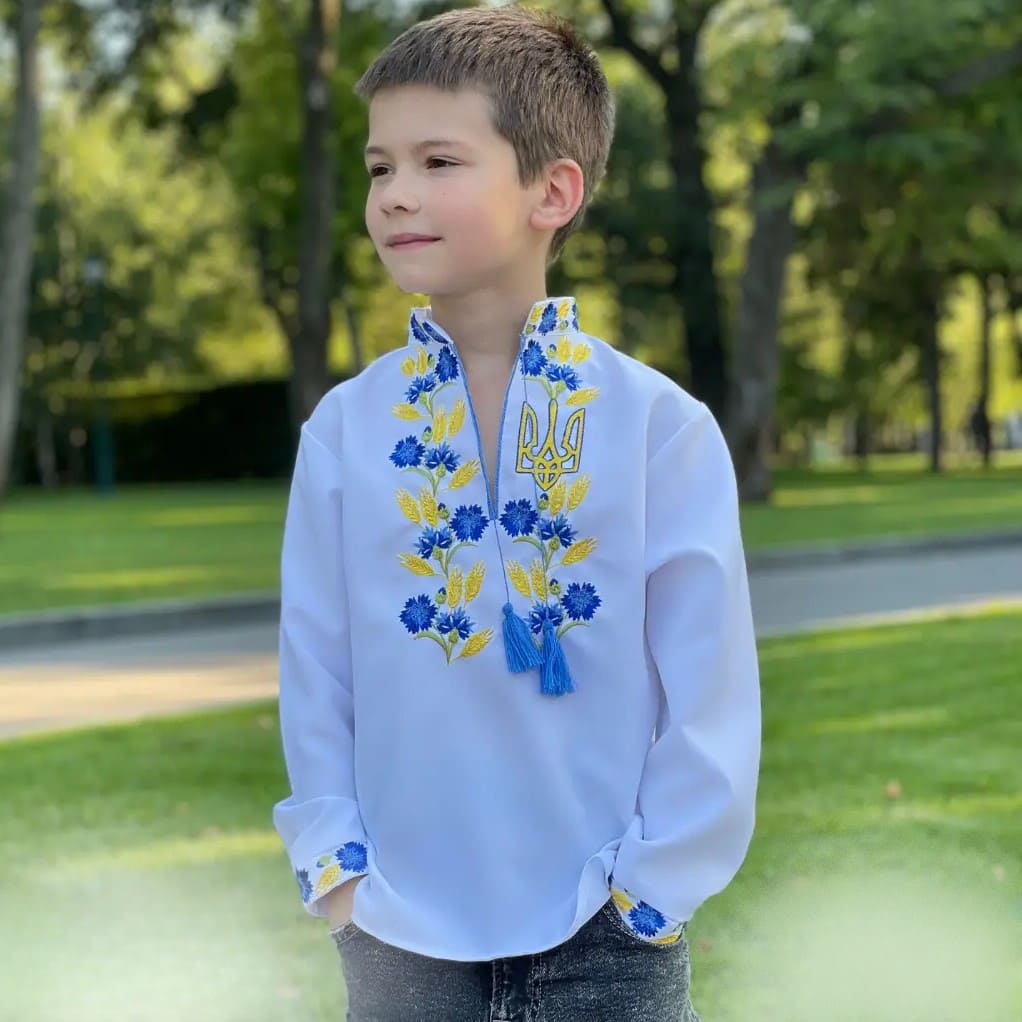 Embroidered Boy's Shirt with Cornflowers and Coat of Arms