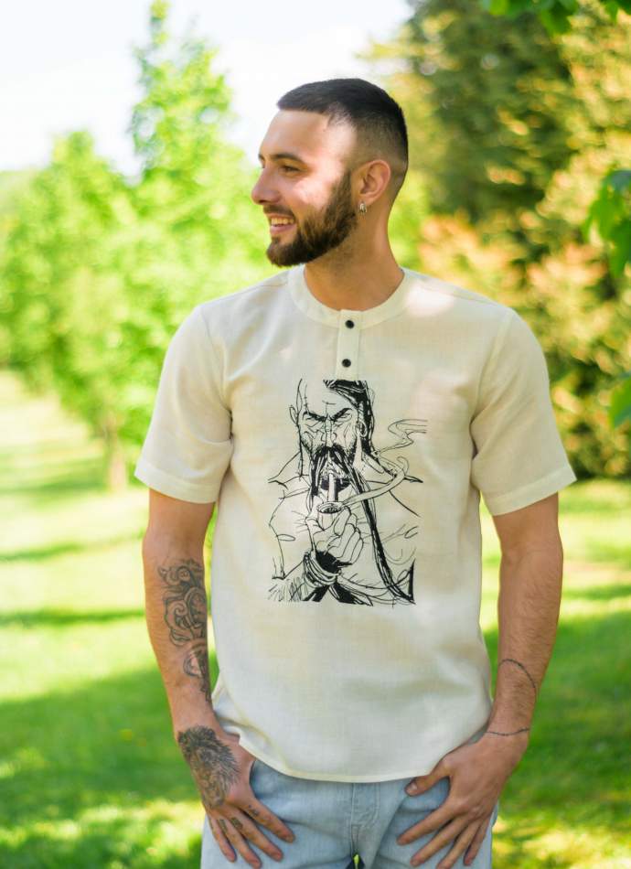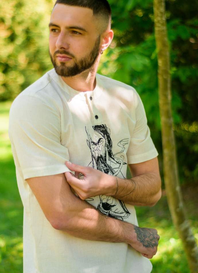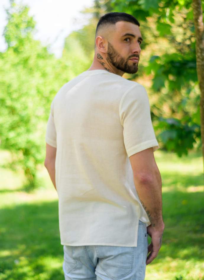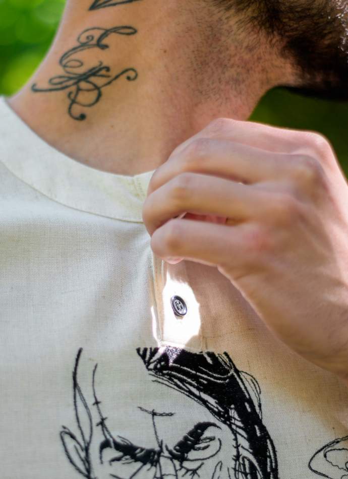 Gray Embroidered Shirt: Made from a blend of cotton, linen, and polyester, this smoothly dyed fabric creates a comfortable and durable base. The shirt's central fastening and loose-fitting design provide a stylish and well-fitted look for individuals of all ages.