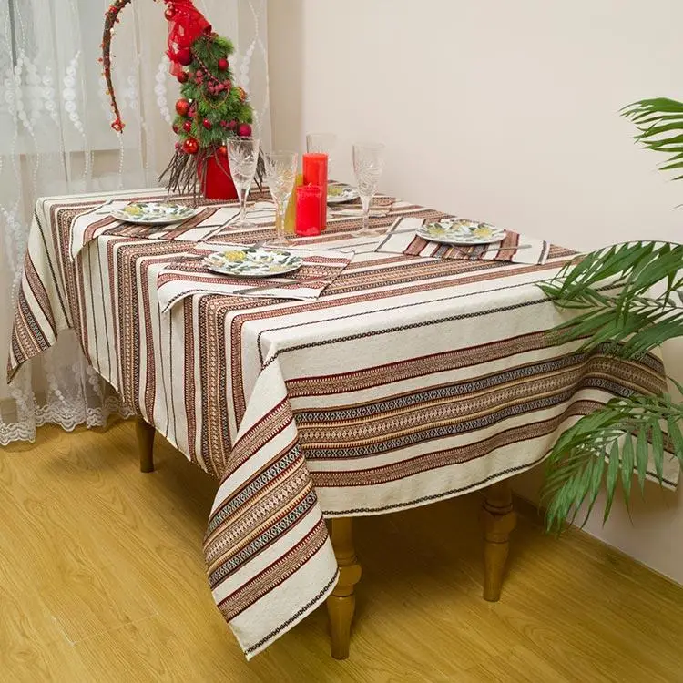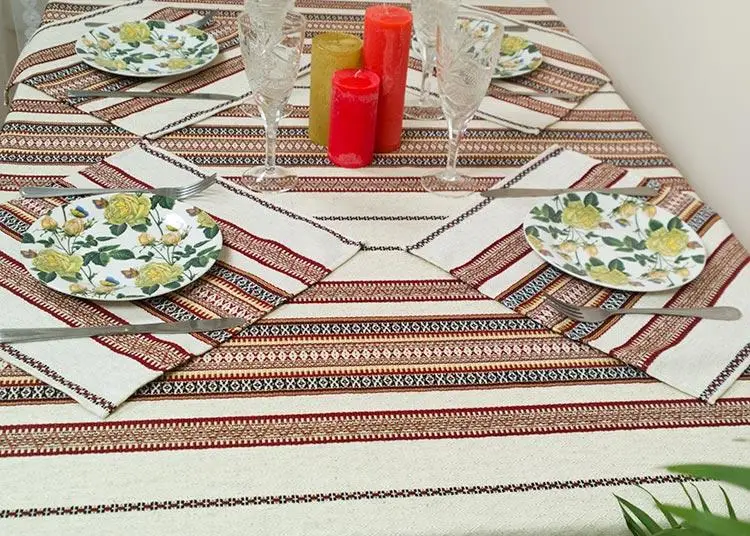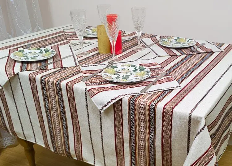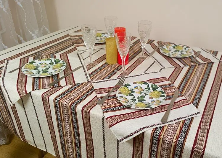 What sets this tablecloth apart is its linen fabric adorned with delicate embossed rhomb patterns, lending it a touch of refined elegance.