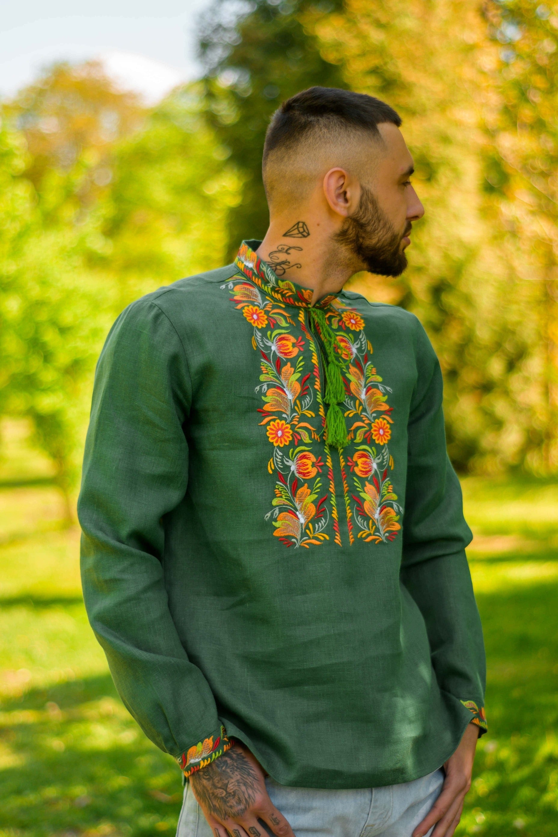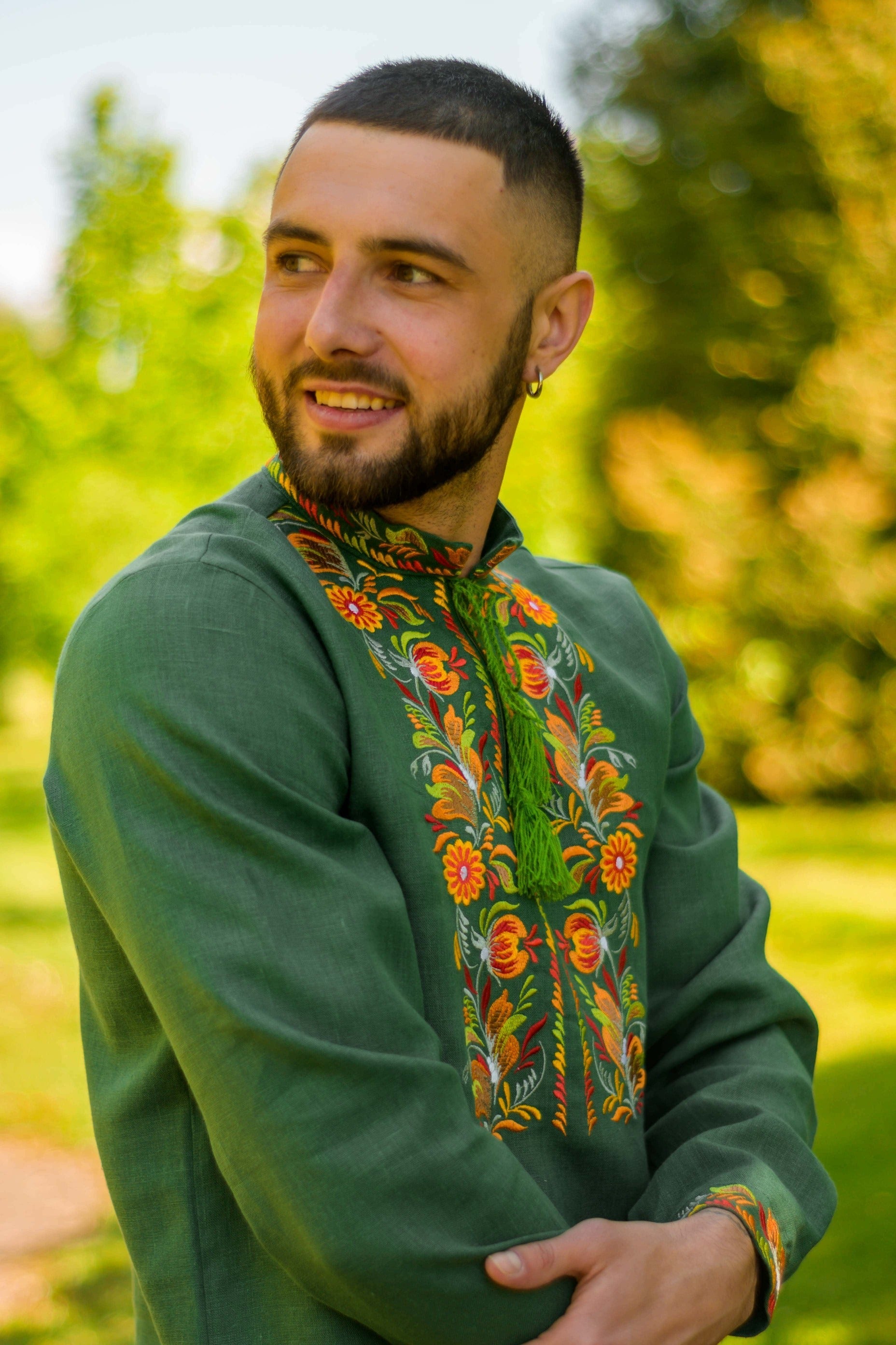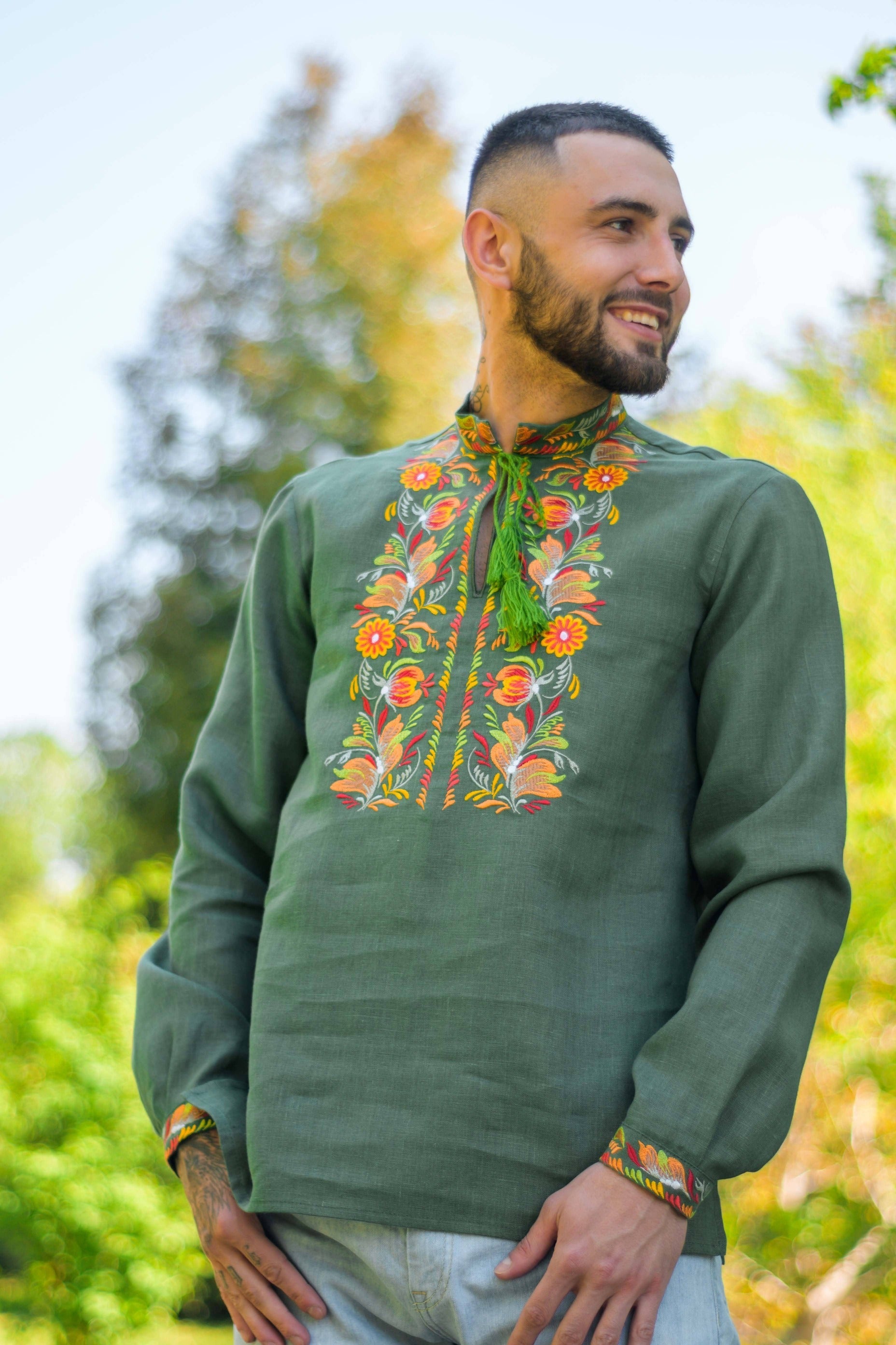 Add a touch of traditional charm to your wardrobe with this exquisite men's linen shirt with long sleeves. Crafted from high-quality linen fabric, this shirt offers a perfect blend of comfort and style. The shirt features an original machine embroidery design, inspired by the renowned "Petrykivka painting" style. The intricate floral motifs and vibrant colors lend a unique and eye-catching appeal to this shirt. Whether worn casually or for special occasions, this shirt is sure to make a statement. Embrace the cultural heritage and showcase your impeccable taste with this exceptional piece of clothing.