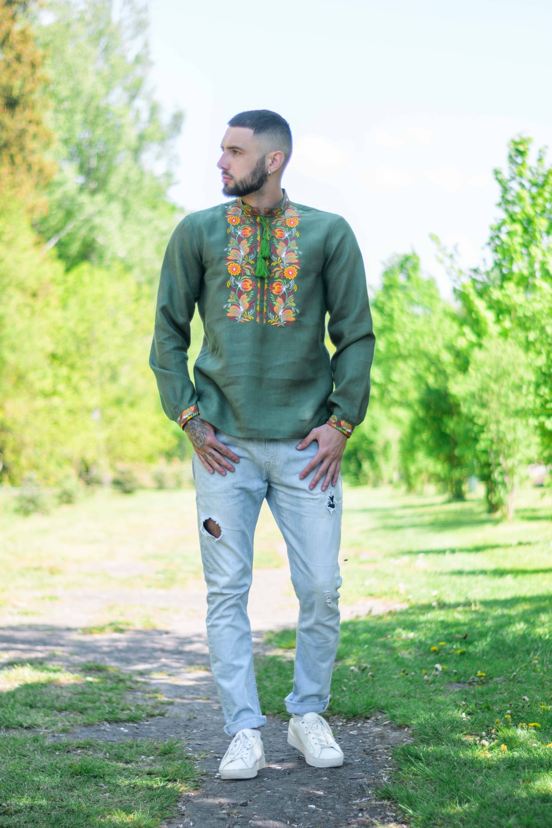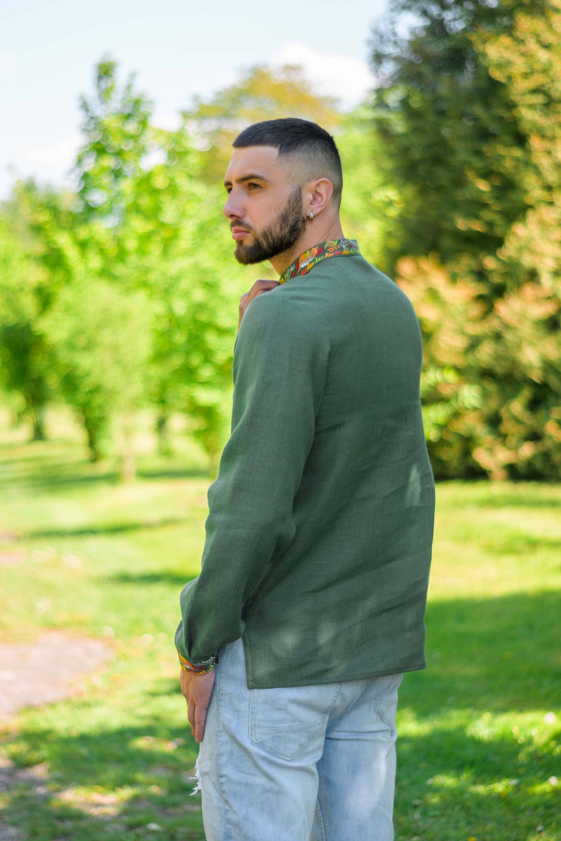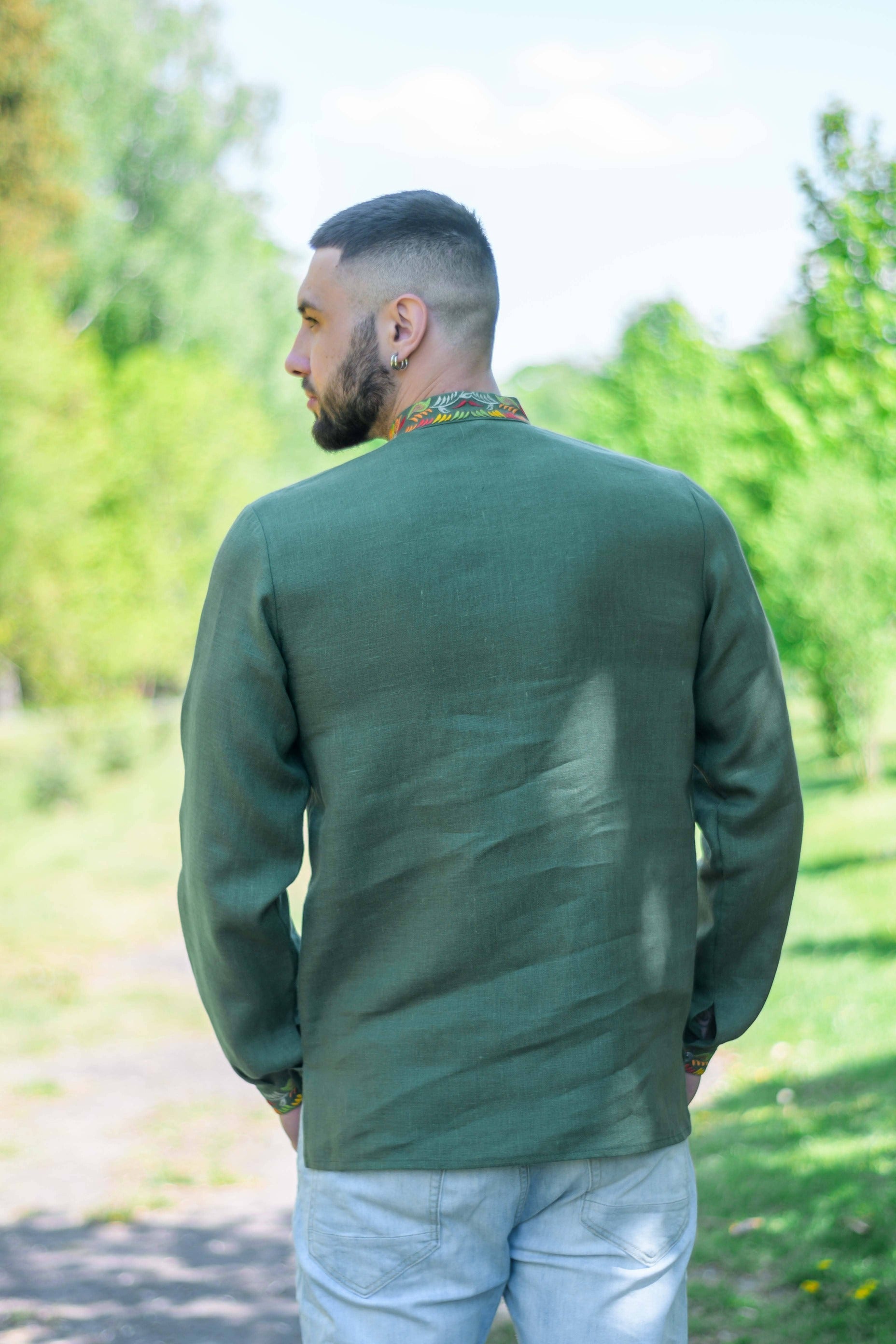 Add a touch of traditional charm to your wardrobe with this exquisite men's linen shirt with long sleeves. Crafted from high-quality linen fabric, this shirt offers a perfect blend of comfort and style. The shirt features an original machine embroidery design, inspired by the renowned "Petrykivka painting" style. The intricate floral motifs and vibrant colors lend a unique and eye-catching appeal to this shirt. Whether worn casually or for special occasions, this shirt is sure to make a statement. Embrace the cultural heritage and showcase your impeccable taste with this exceptional piece of clothing.