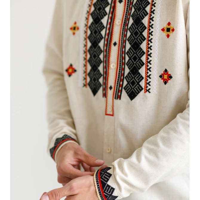 Men’s Ukrainian Embroidered Vyshyvanka Shirt with Buttons