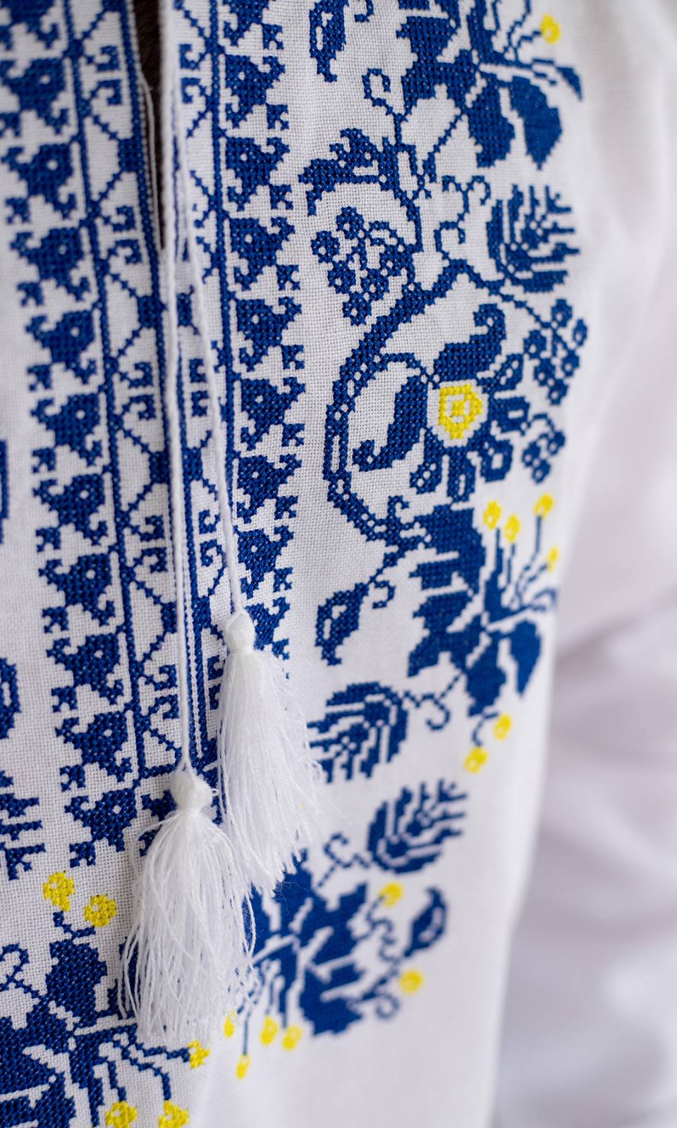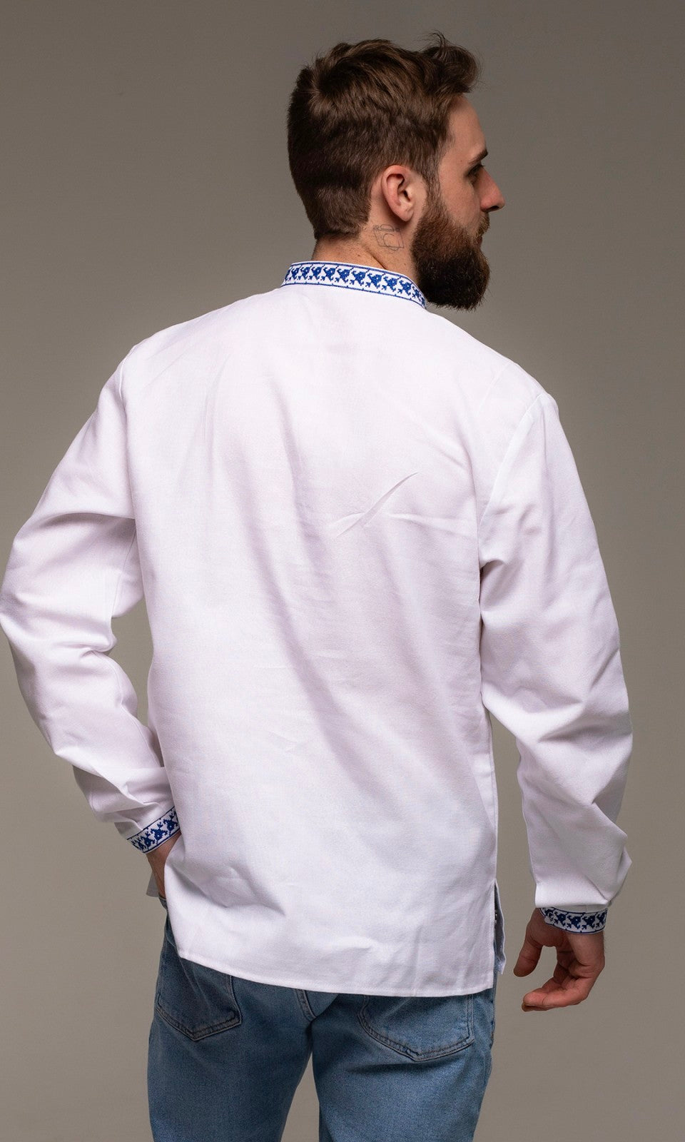 Men's Vyshyvanka with Blue Embroidery Pattern