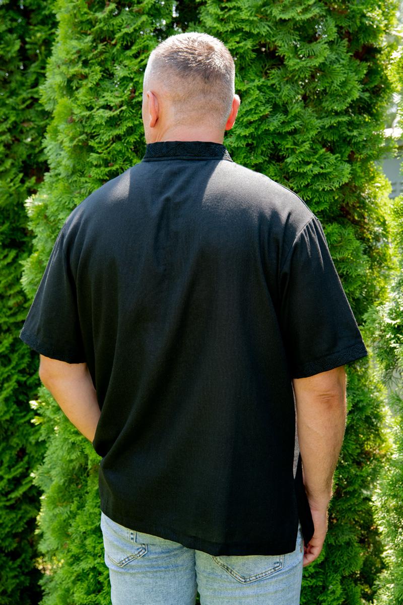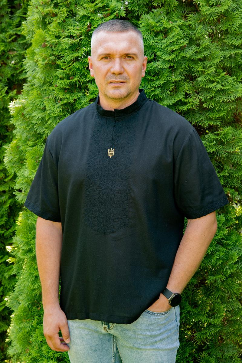 Elevate your wardrobe with this stylish men's single-color embroidered shirt featuring the emblem of Ukraine. Crafted from linen, this shirt is a luxurious addition that combines fashion with minimalistic prints. The intricately embroidered original ornament, created with quality threads, exudes a subtle yet highly stylish vibe. The standout feature of this men's linen embroidered shirt is the incorporation of Ukraine's emblem.
