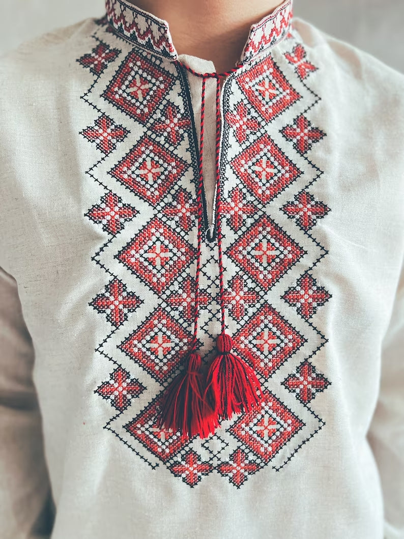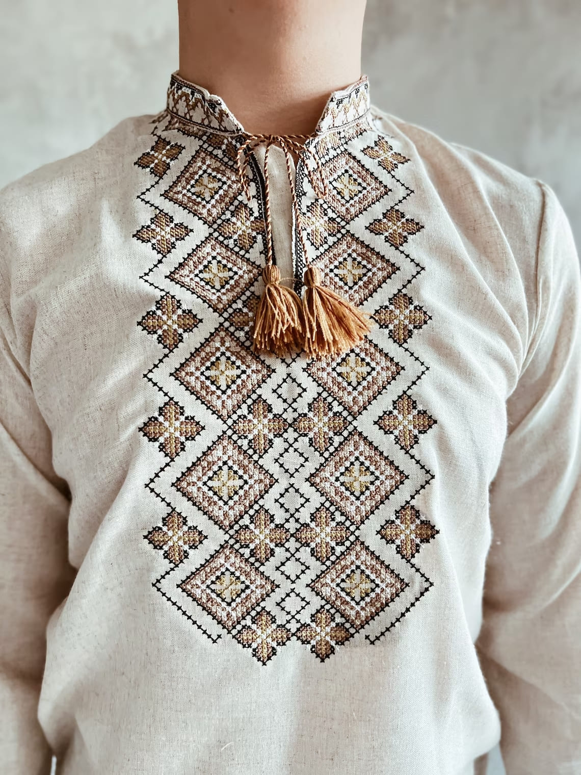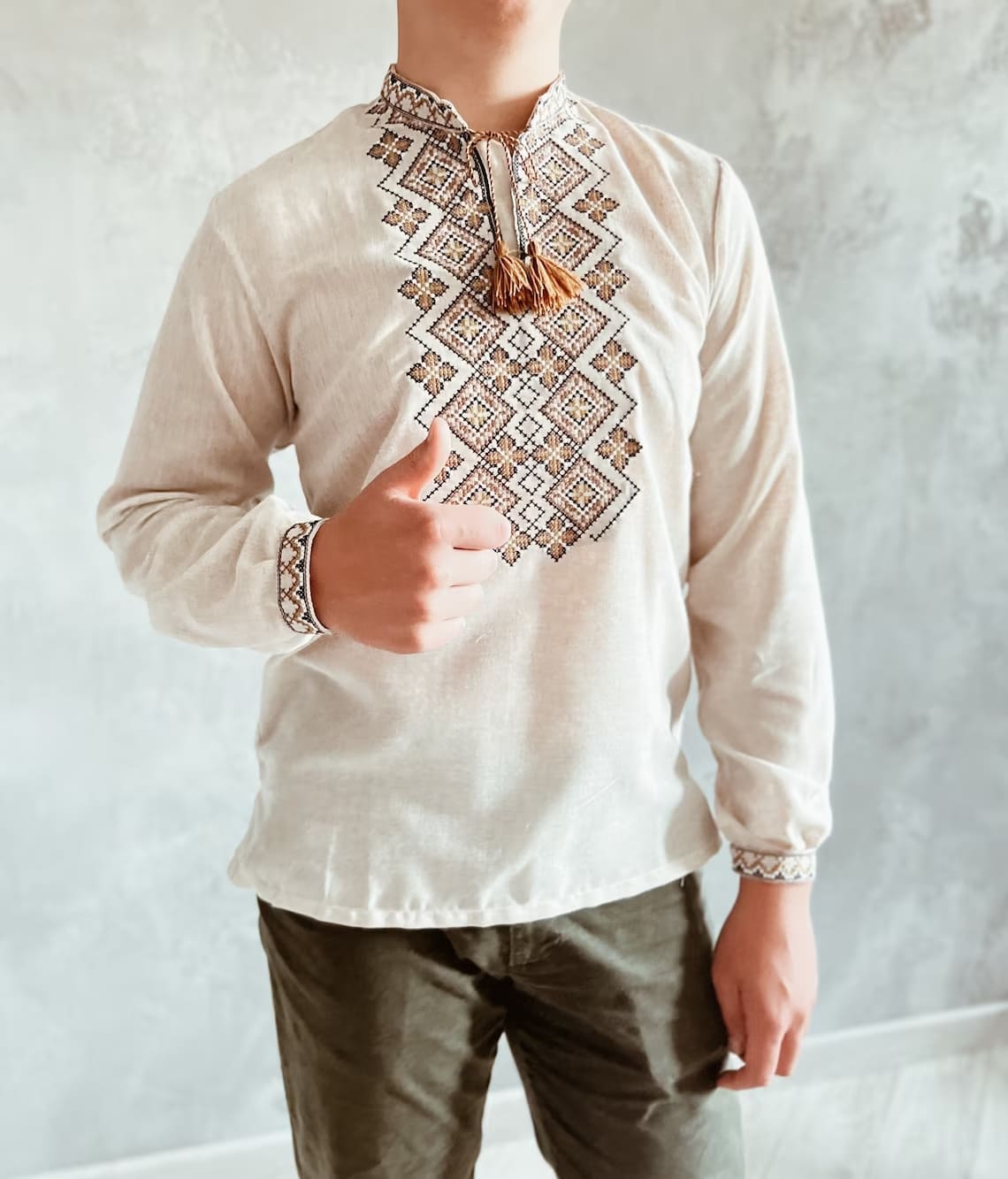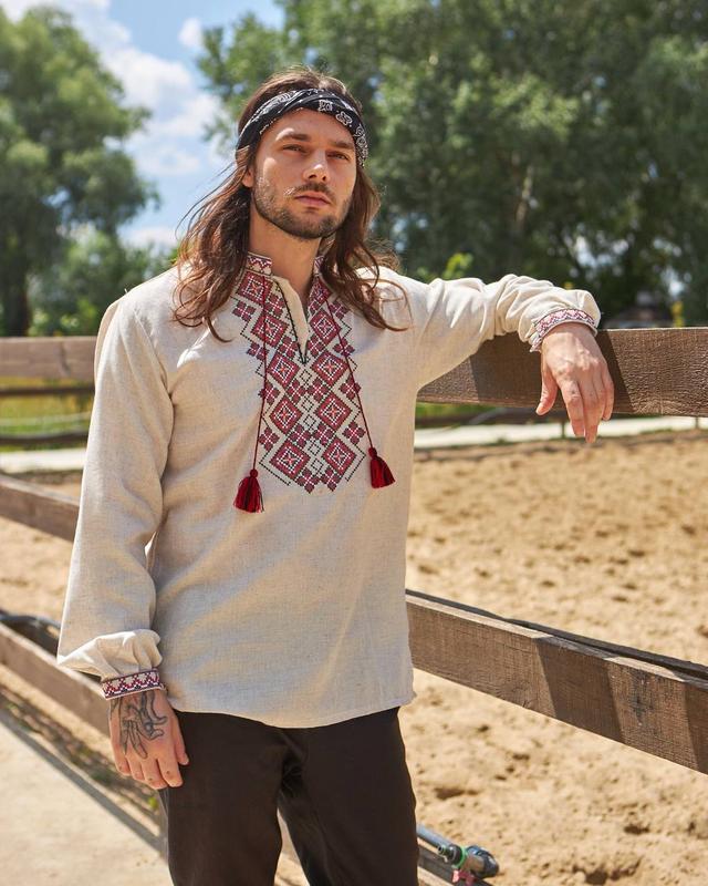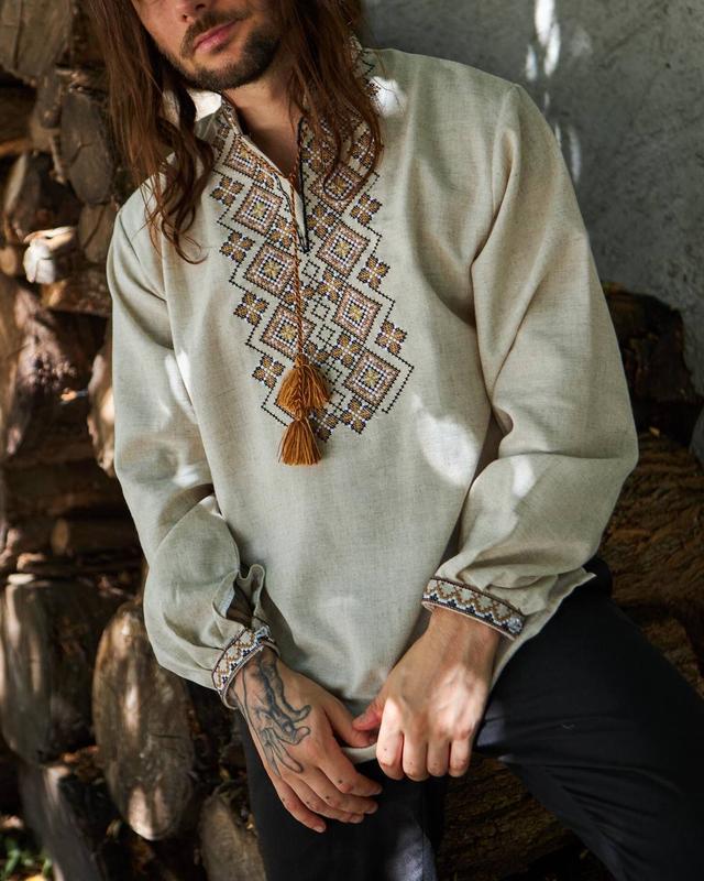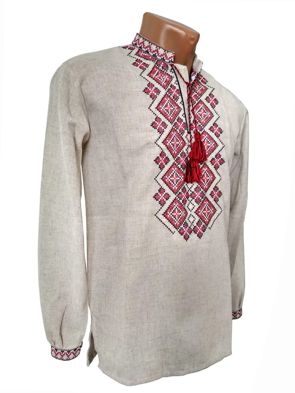 For men who appreciate calm colors, high-quality clothes, and value comfort, this embroidered shirt model will be a great find. Firstly, the shirt is made of unbleached natural linen, which allows the fabric to breathe and provides comfort in any weather.