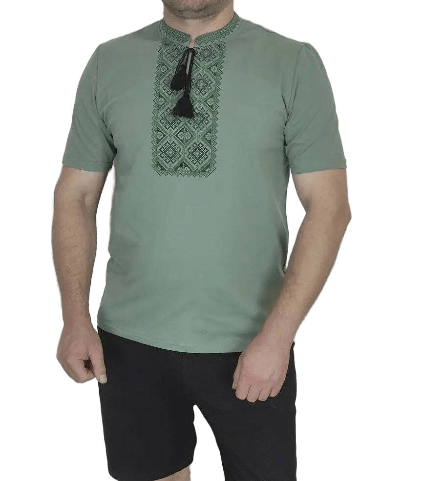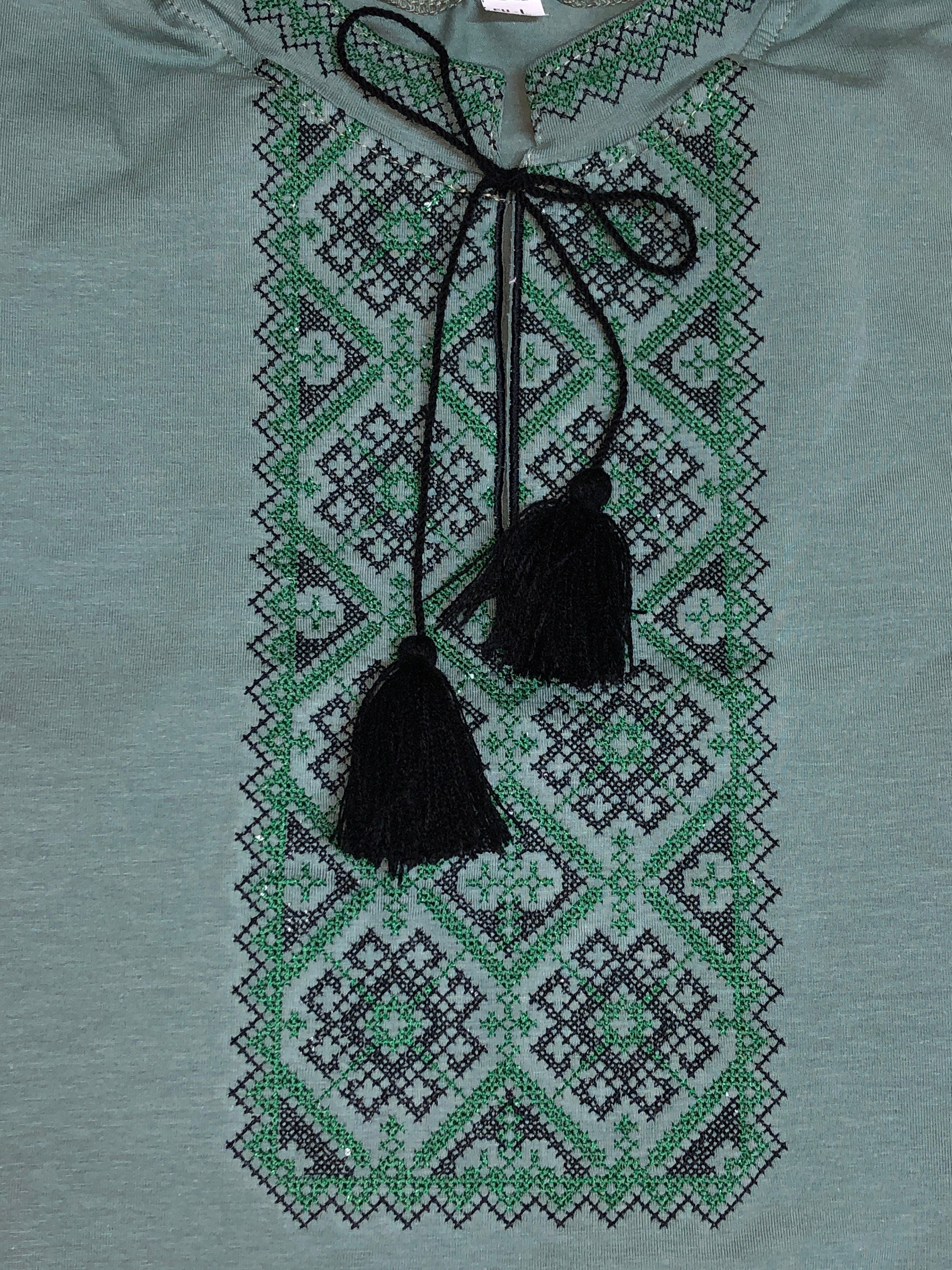 Sleeve: Short Ornament: Ukrainian ethnic prints Material: Knitted fabric Composition: 95% cotton, 5% elastane