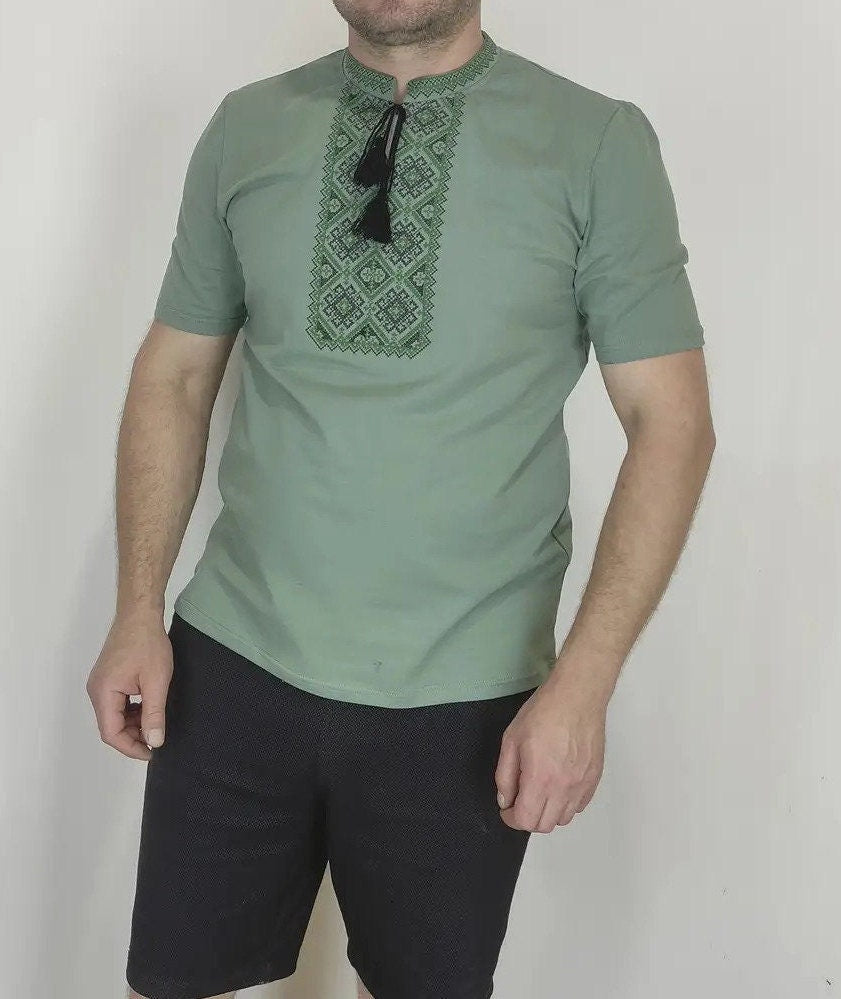 This high-quality embroidered shirt is adorned with a two-color contrasting ornament and a discreet Ukrainian geometric pattern that represents folk traditions passed down from generations. It's perfect for both formal and casual occasions, and fits well on the body while feeling comfortable to wear. The new ethnic collection is made of only premium embroidered shirts, crafted from natural fabrics and offered at affordable prices. It pairs perfectly with jeans.