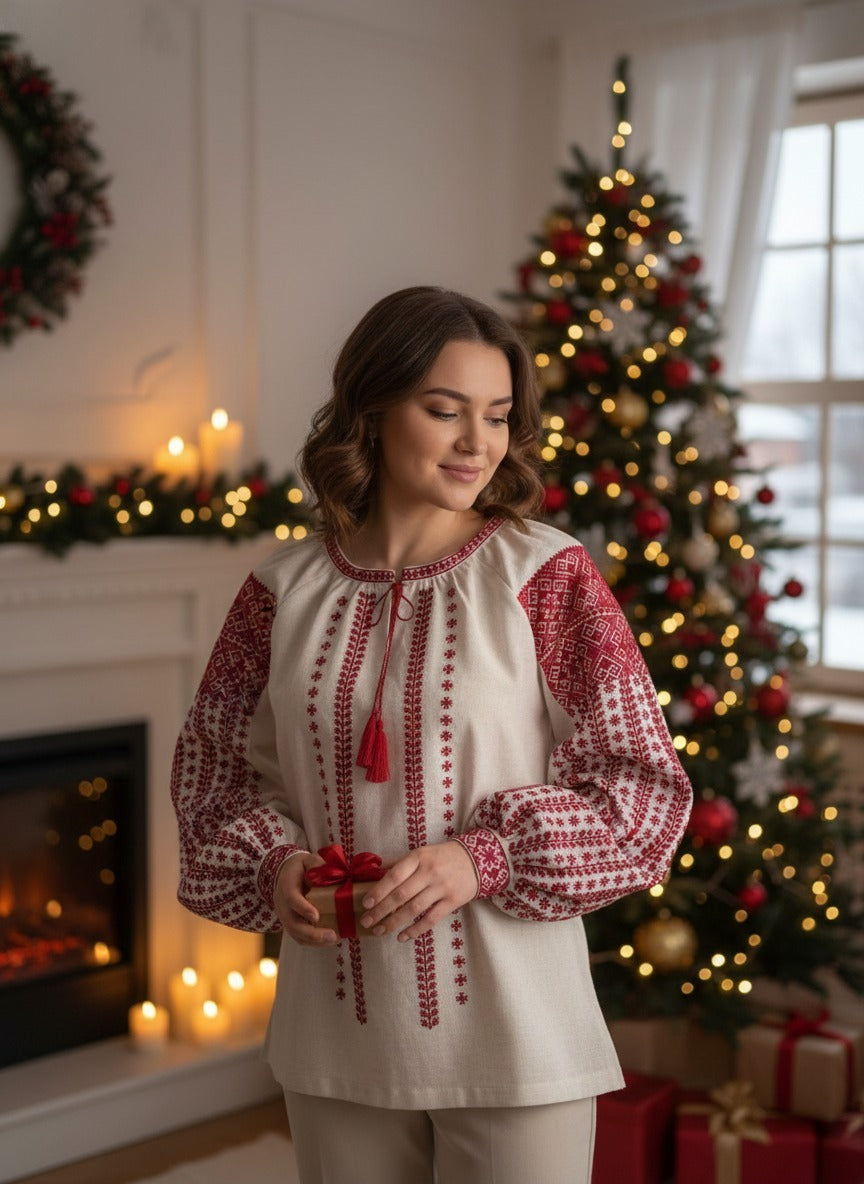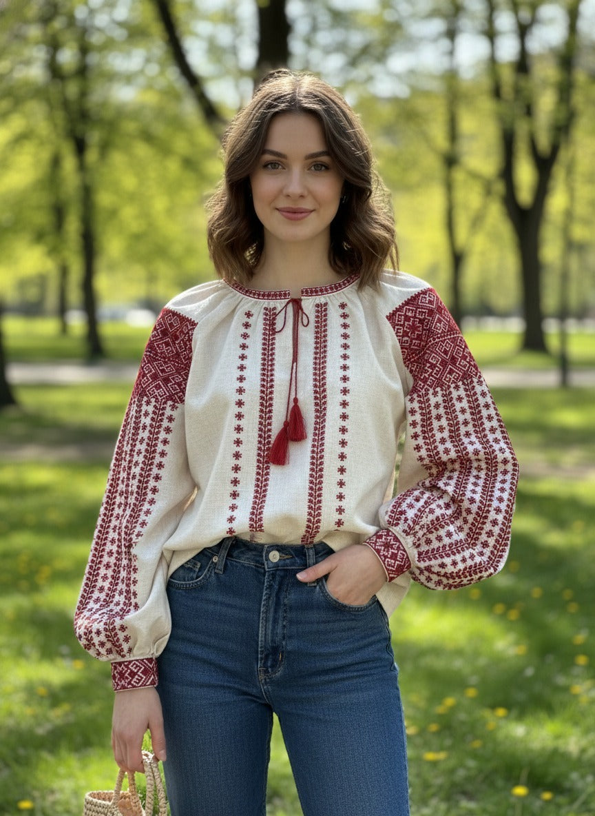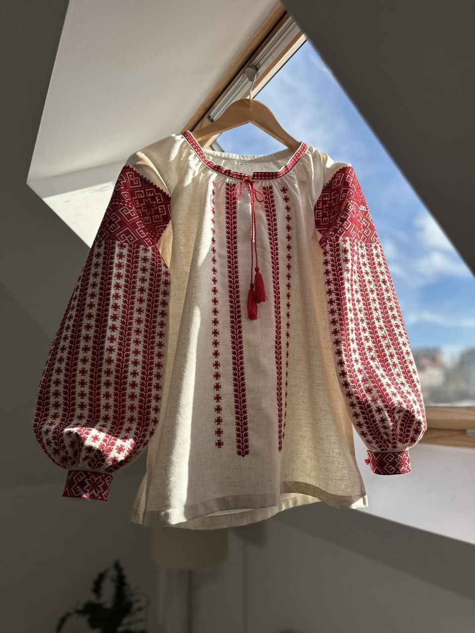 Ukrainian Linen Vyshyvanka with Red Embroidery