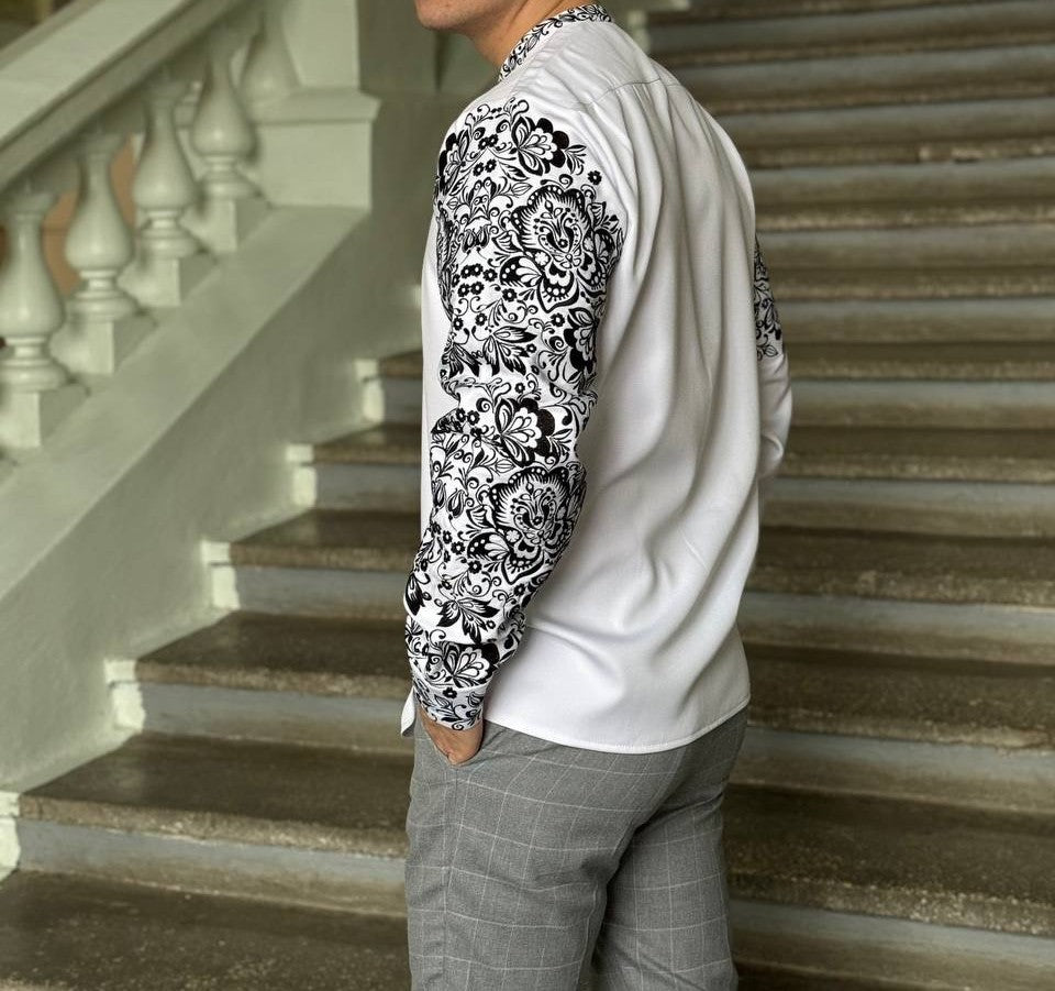This Ukrainian men’s embroidered shirt is crafted from premium structured cotton that holds its shape beautifully and resists wrinkling, keeping a crisp, elegant look throughout the day.