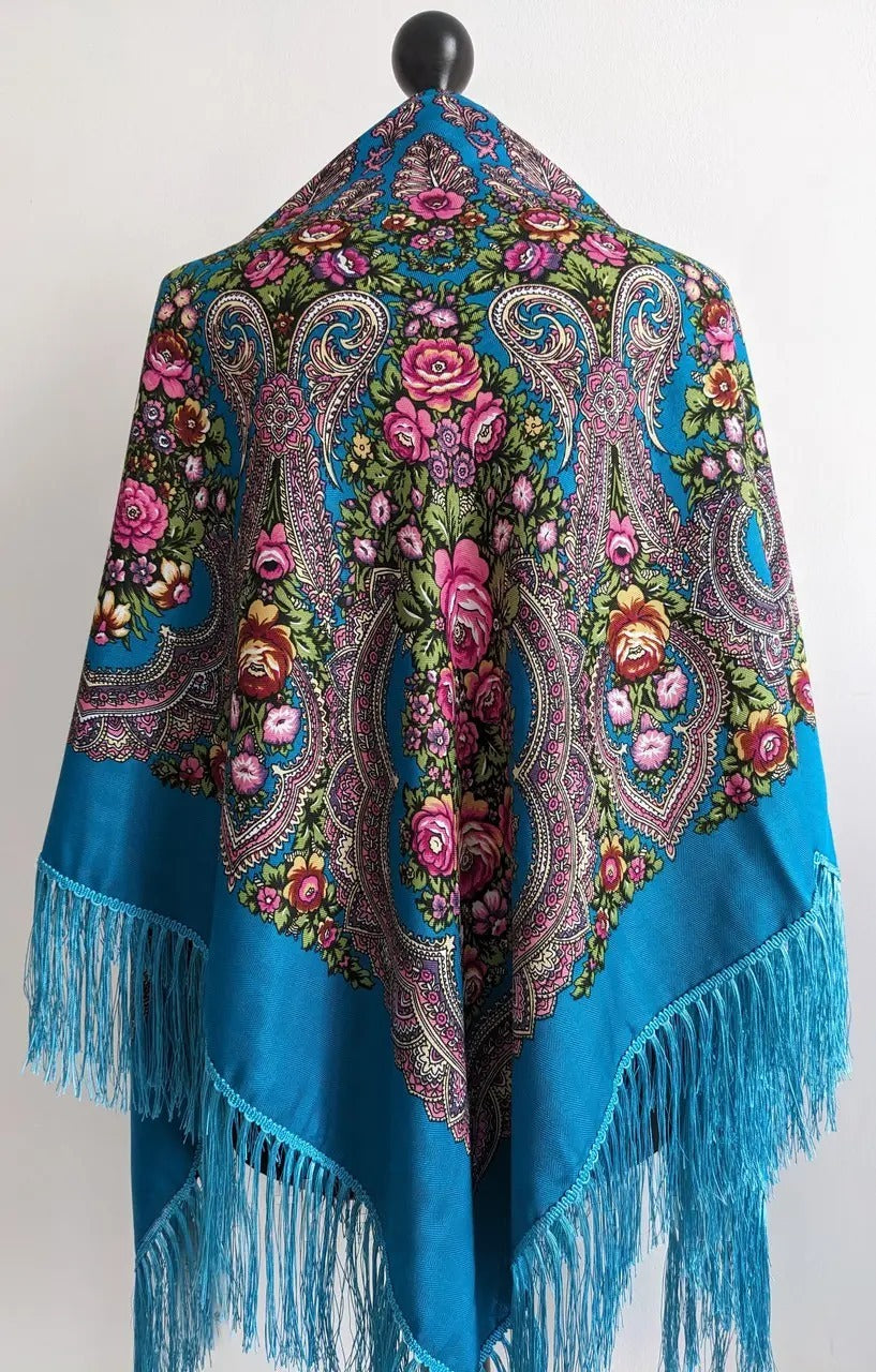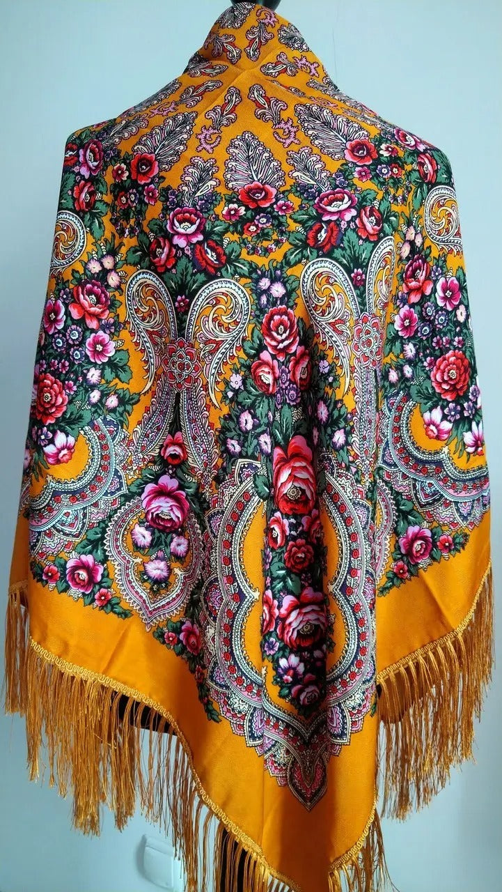 Ukrainian scarf with flowers 120*120 cm