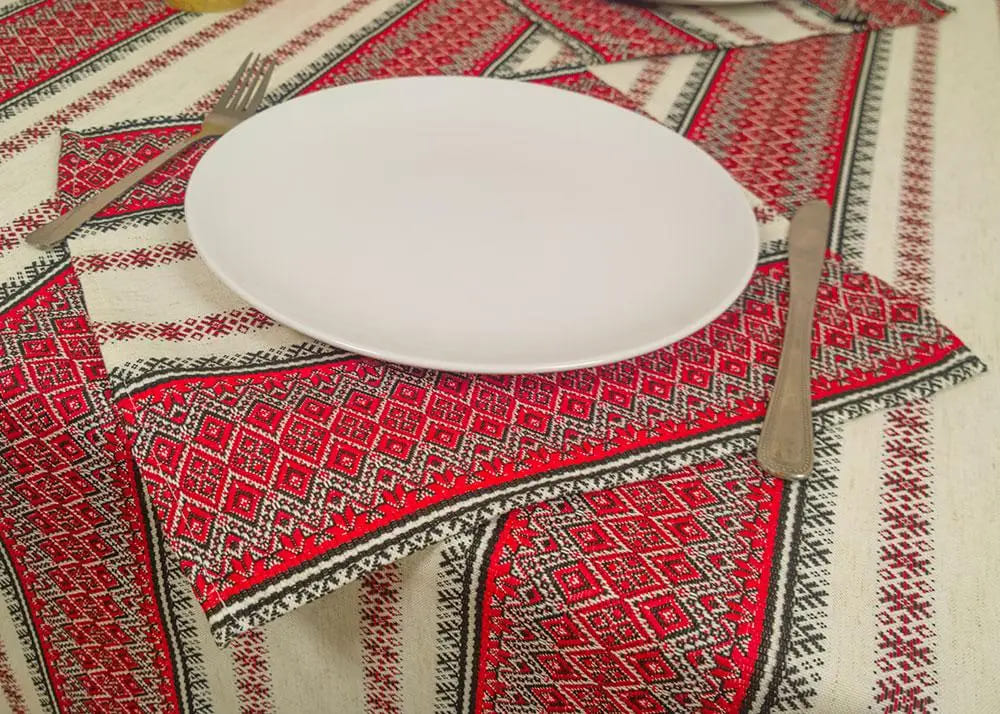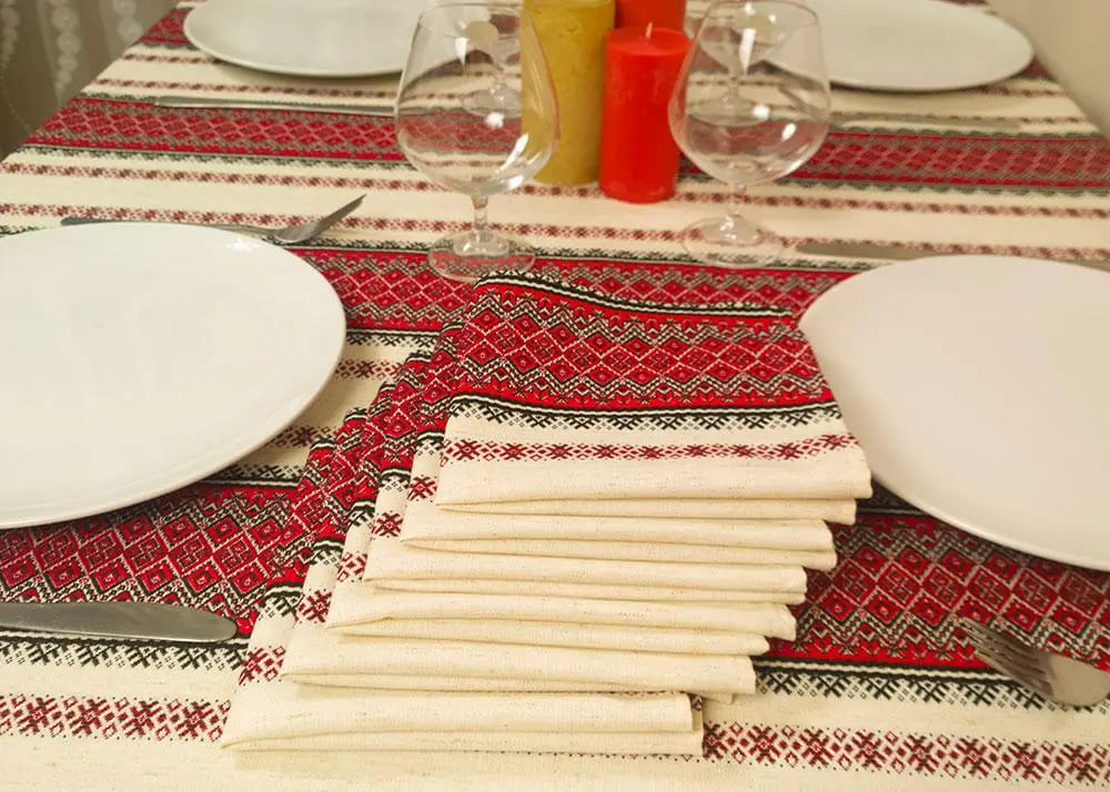 Ukrainian tablecloth with traditional pattern and 6 napkins