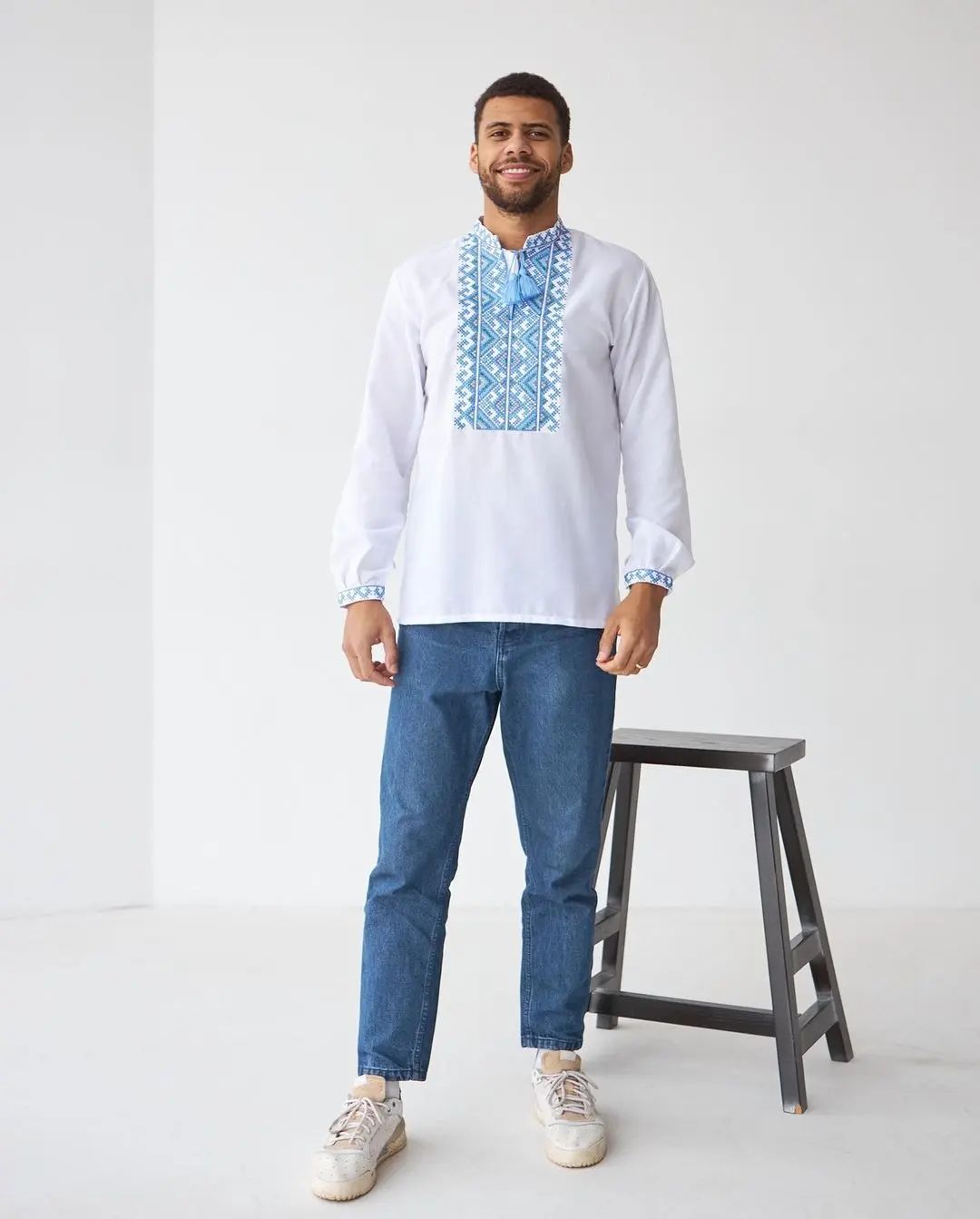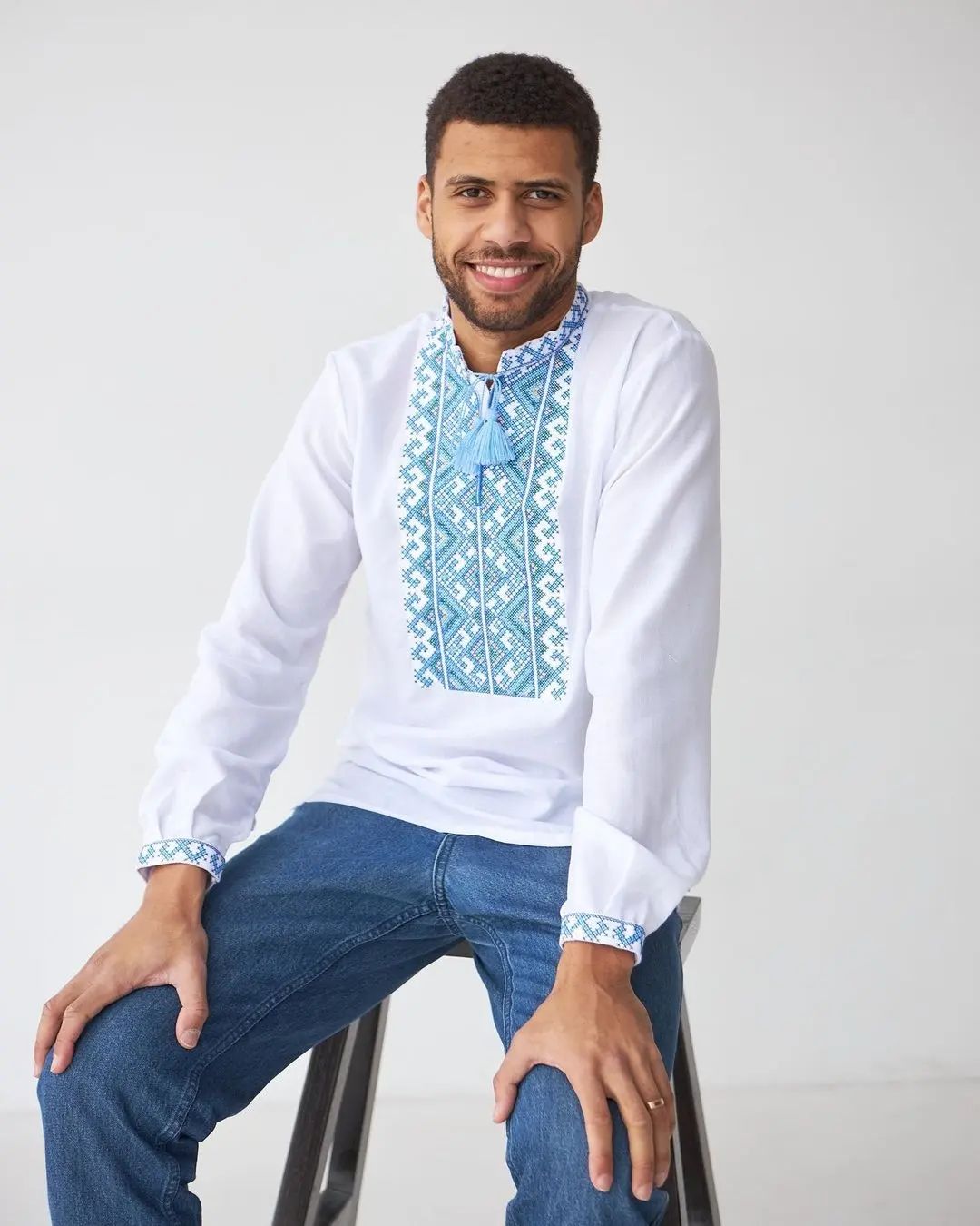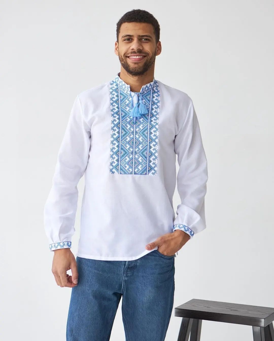 Vyshyvanka men Ukrainian traditional clothesβa perfect blend of contemporary fashion and rich cultural heritage. Immerse yourself in the intricate beauty of our stylish embroidered shirt adorned with a two-color ornament, ideal for both everyday wear and festive occasions.