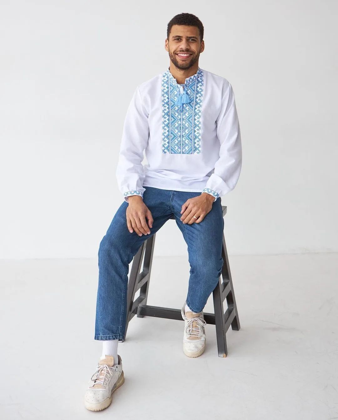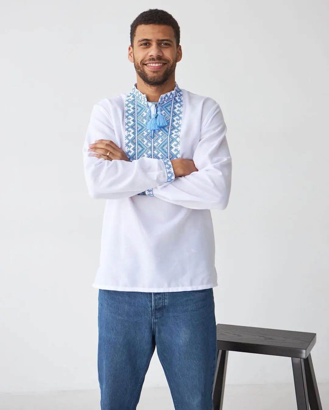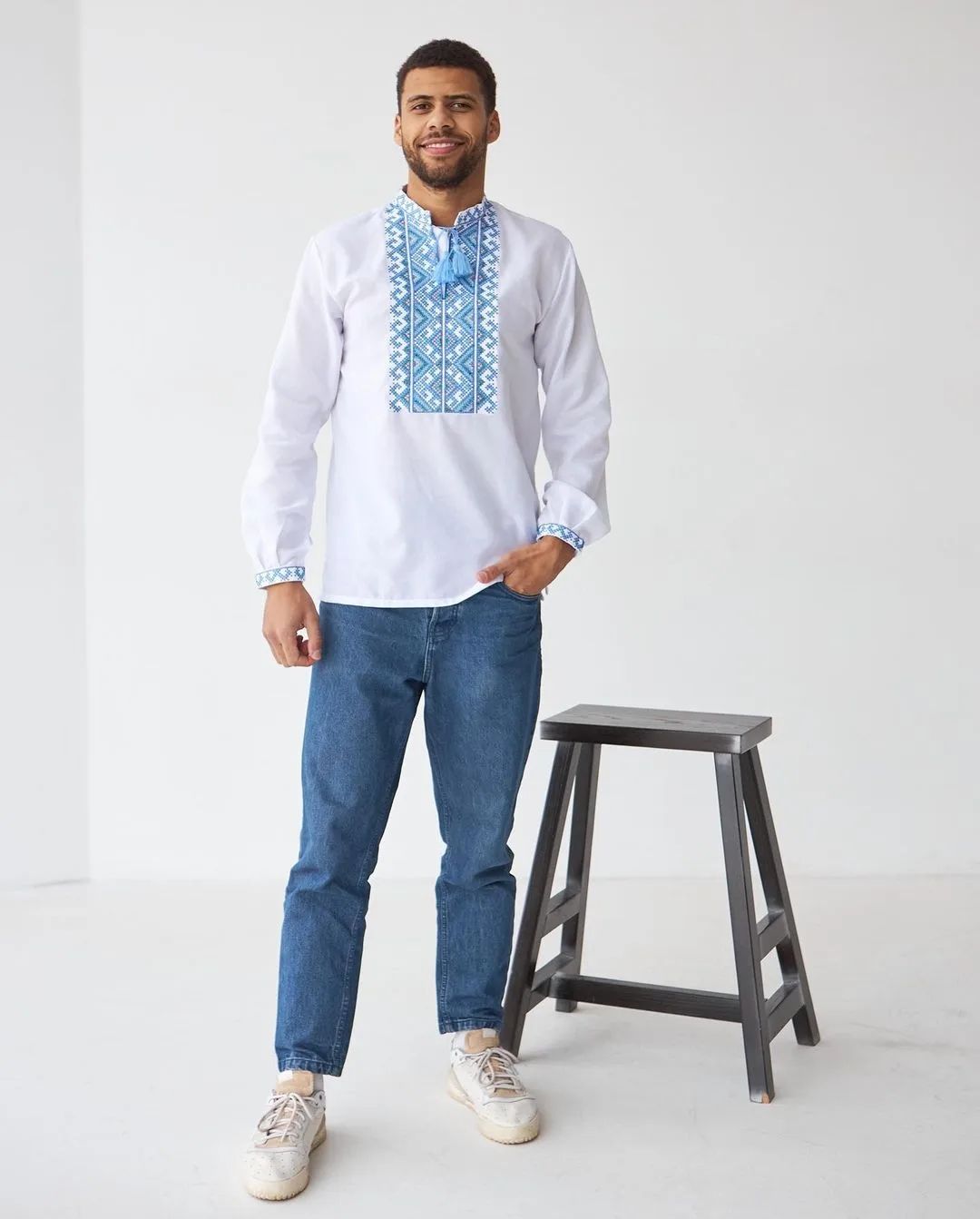 Vyshyvanka men Ukrainian traditional clothesβa perfect blend of contemporary fashion and rich cultural heritage. Immerse yourself in the intricate beauty of our stylish embroidered shirt adorned with a two-color ornament, ideal for both everyday wear and festive occasions.