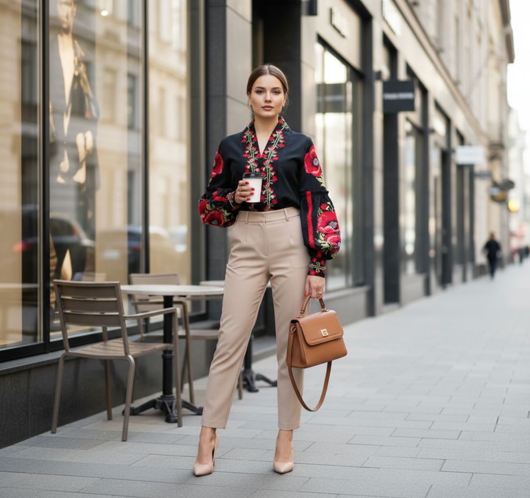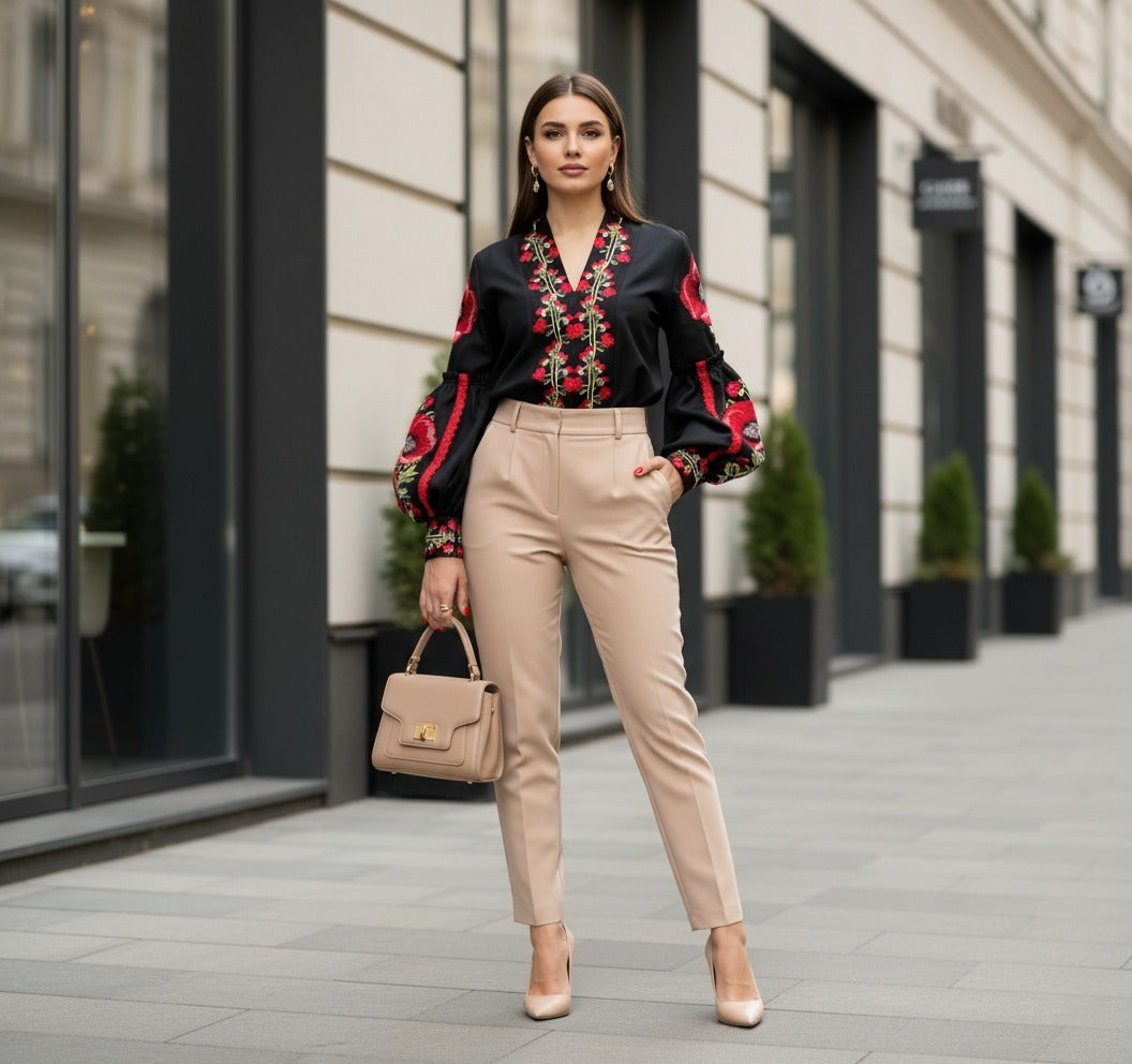 Style it with classic trousers or a skirt for an elegant look, or pair it with jeans for a chic everyday outfit. Ideal for cultural celebrations, special occasions, or evenings that call for timeless beauty.