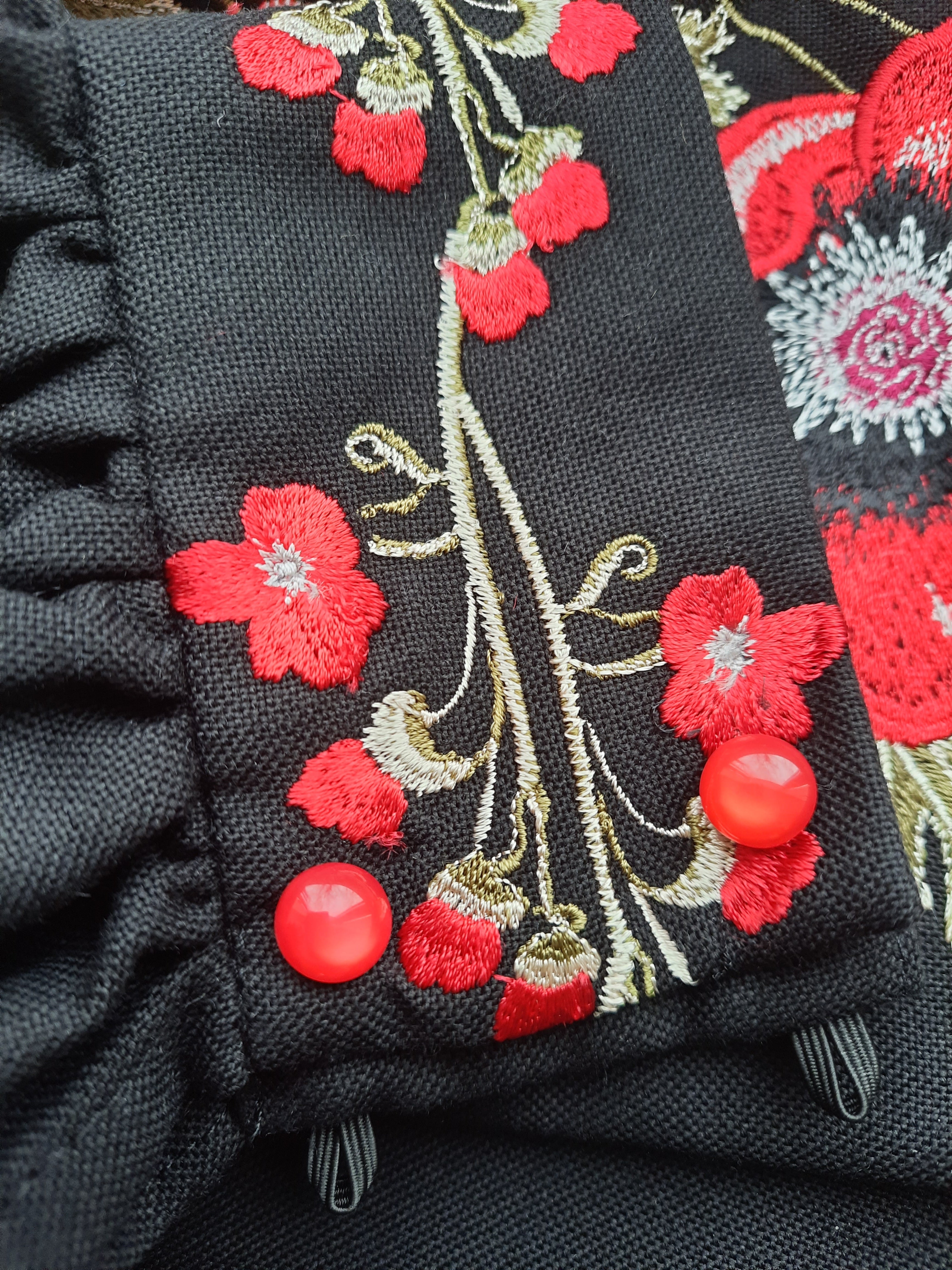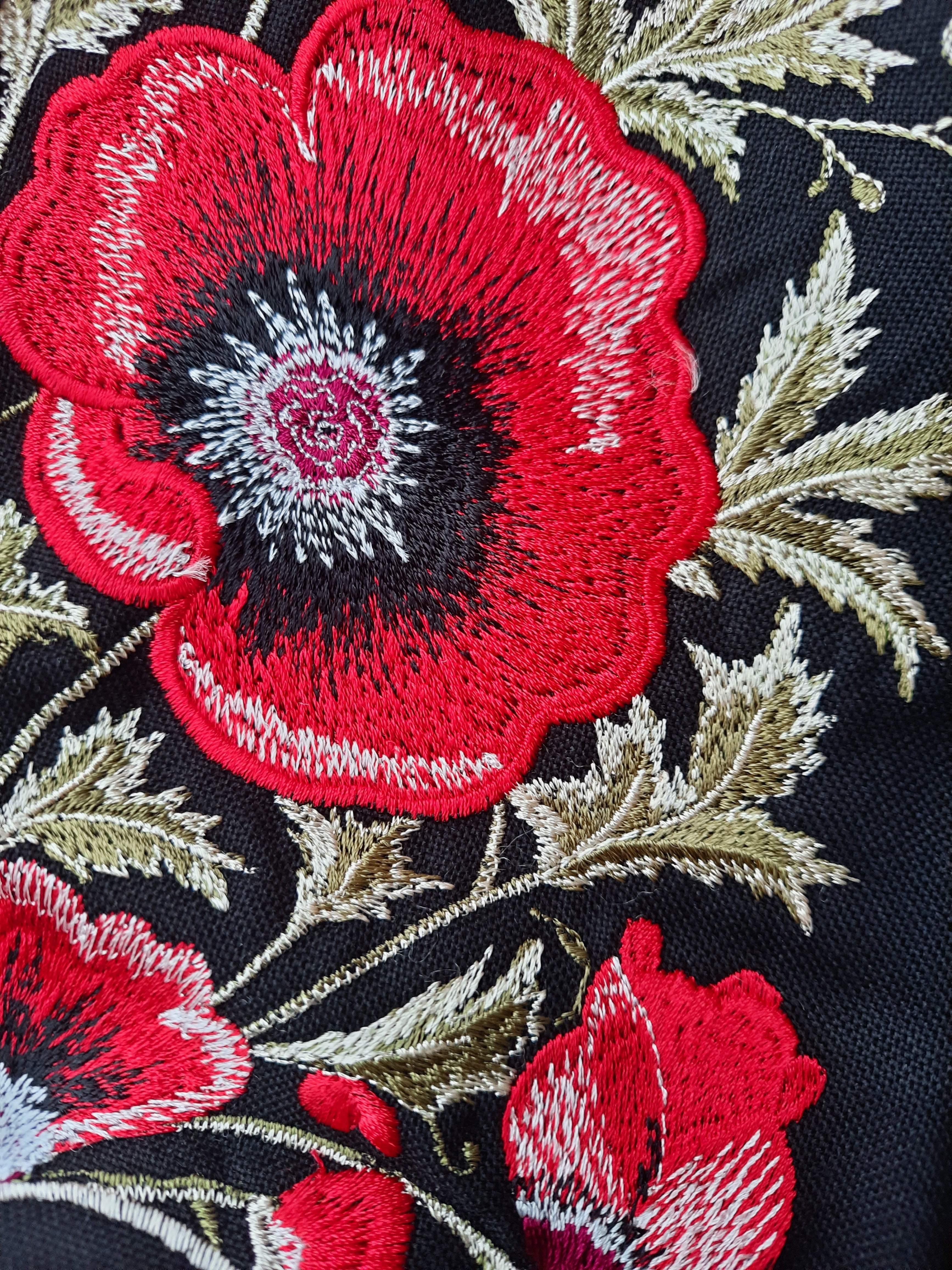 Exquisite red poppy embroidery symbolizing love, beauty, and strength