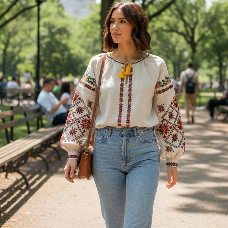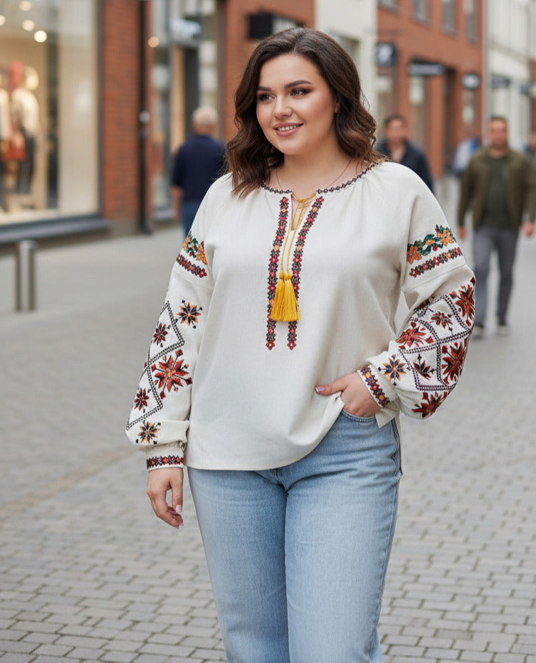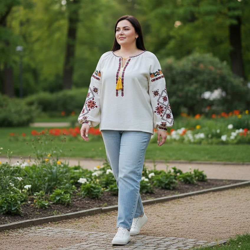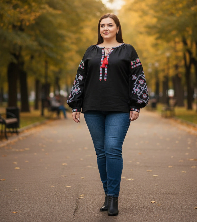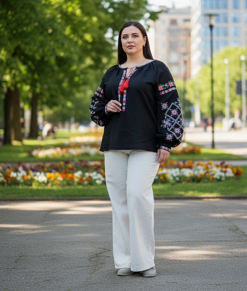 Introducing our creation - the Unconquered women's embroidered shirt, showcasing an incredible fusion of colors 🇺🇦. Immerse yourself in the rich cultural tapestry of our meticulously crafted garment, celebrating the spirit of resilience and tradition. The harmonious blend of vibrant hues reflects the essence of our heritage, making the Unconquered vyshyvanka a symbol of strength and elegance. Embrace the timeless beauty of Ukrainian embroidery with this exquisite piece that pays homage to our unyielding spirit.