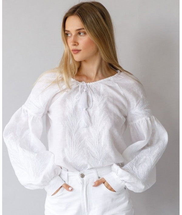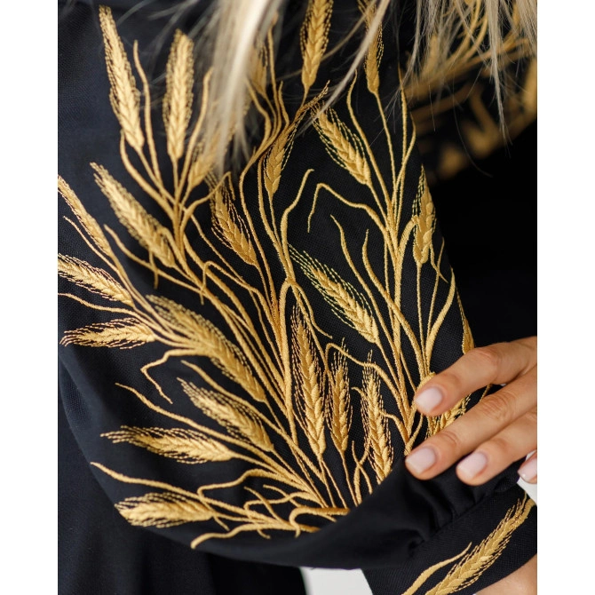 Women’s Ukrainian Embroidered Blouse with Golden Wheat Embroidery