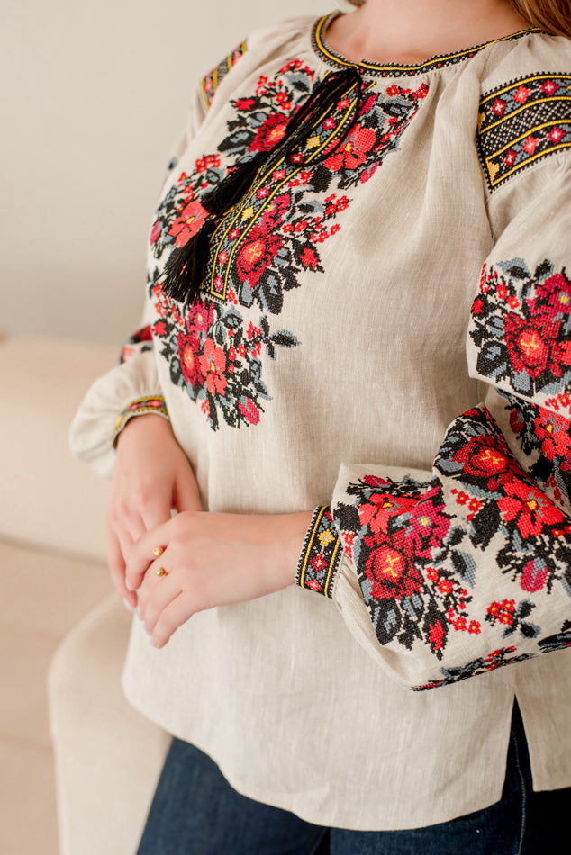 Women’s Ukrainian Linen Vyshyvanka with Floral Embroidery