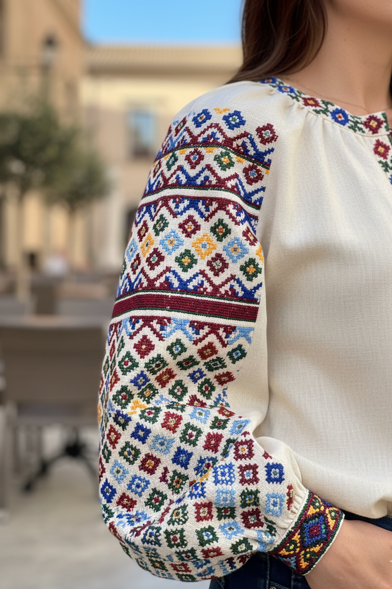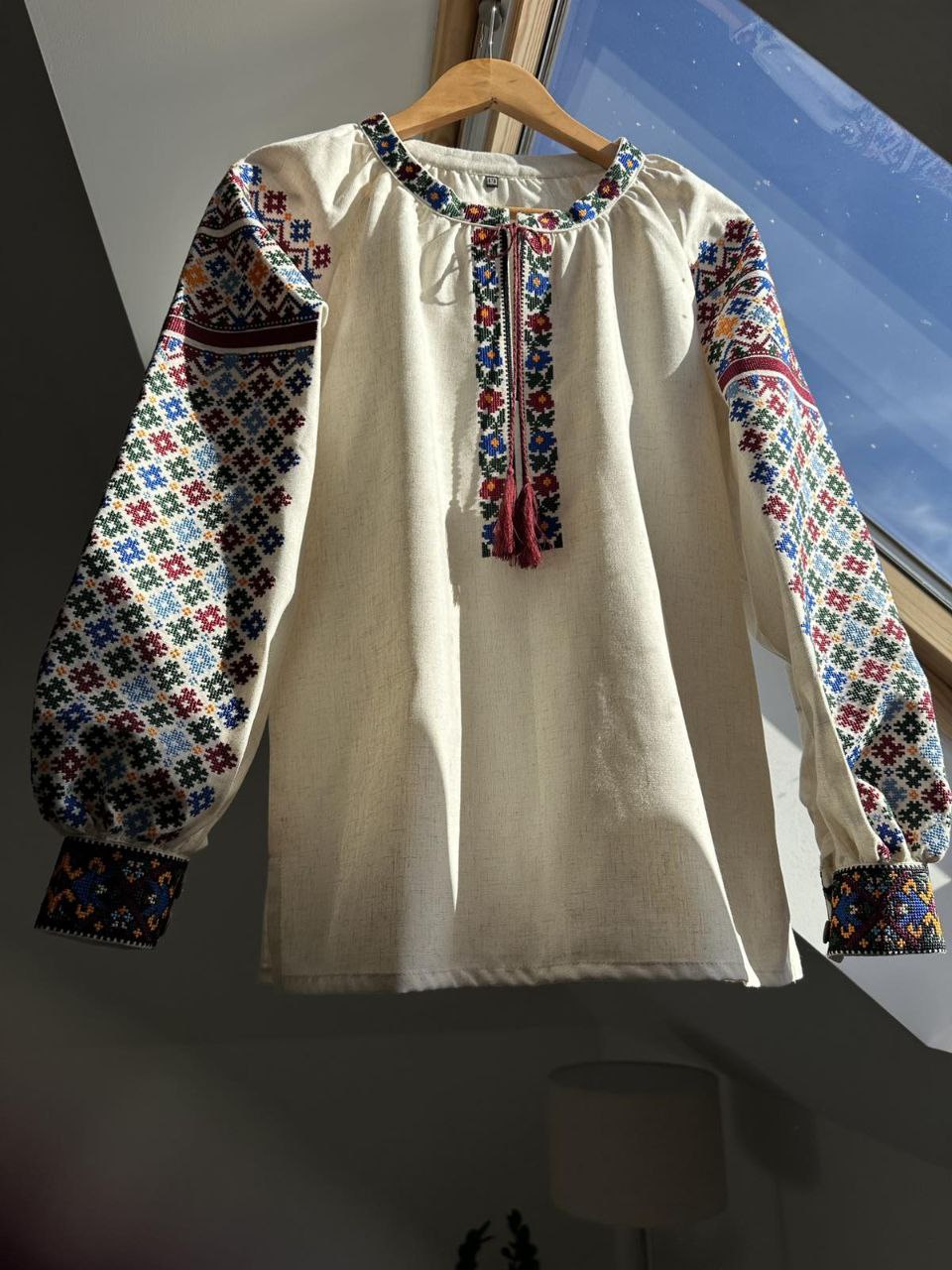 Ukrainian tradition comes alive in this embroidered vyshyvanka blouse. Crafted from natural fabric, it features exquisite multicolor embroidery that blends floral and geometric patterns. Each stitch tells a story of heritage and artistry, making this blouse more than just clothing—it is a cultural treasure.